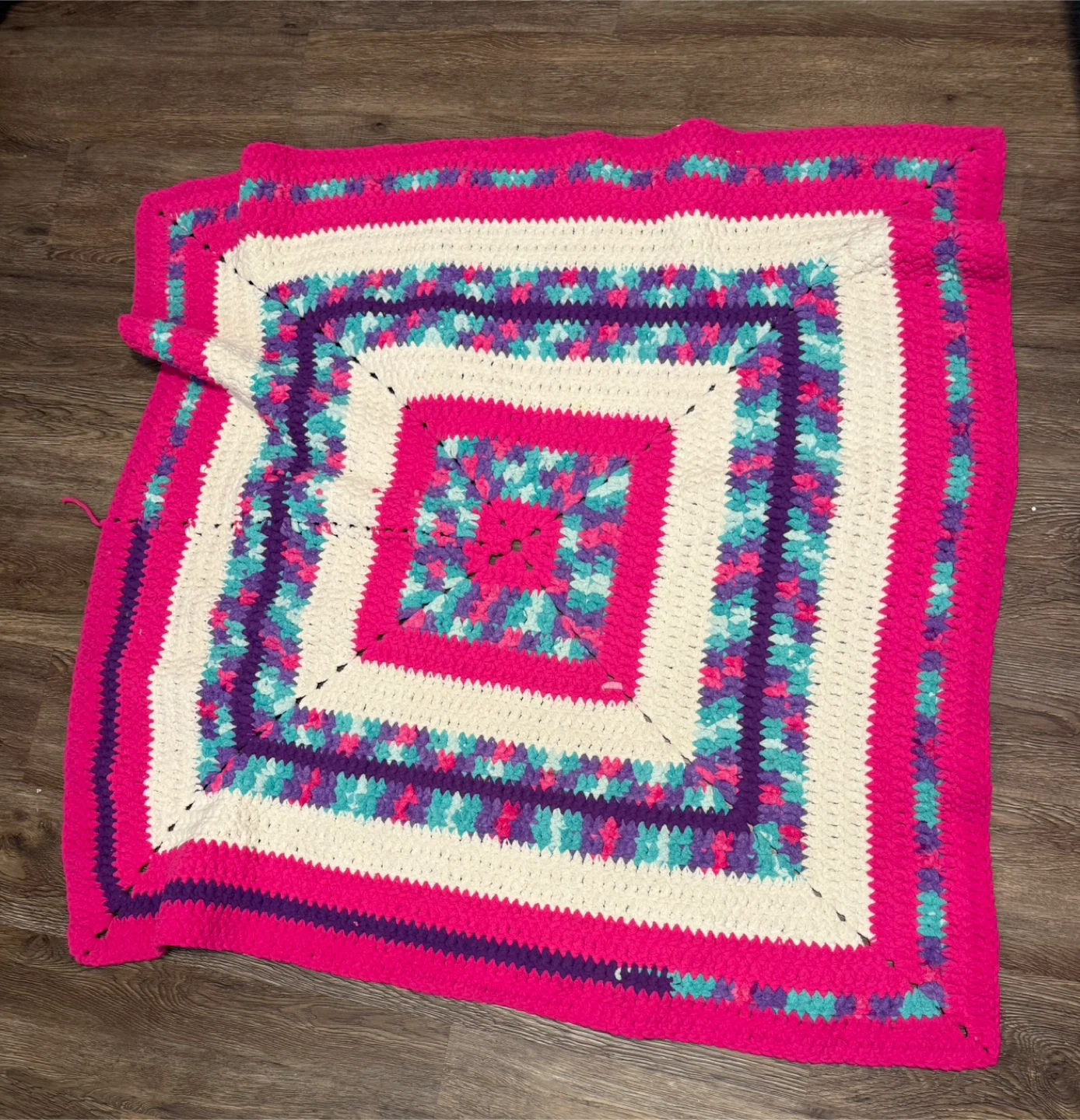 Handmade Crochet Blanket - Pink, Purple, White