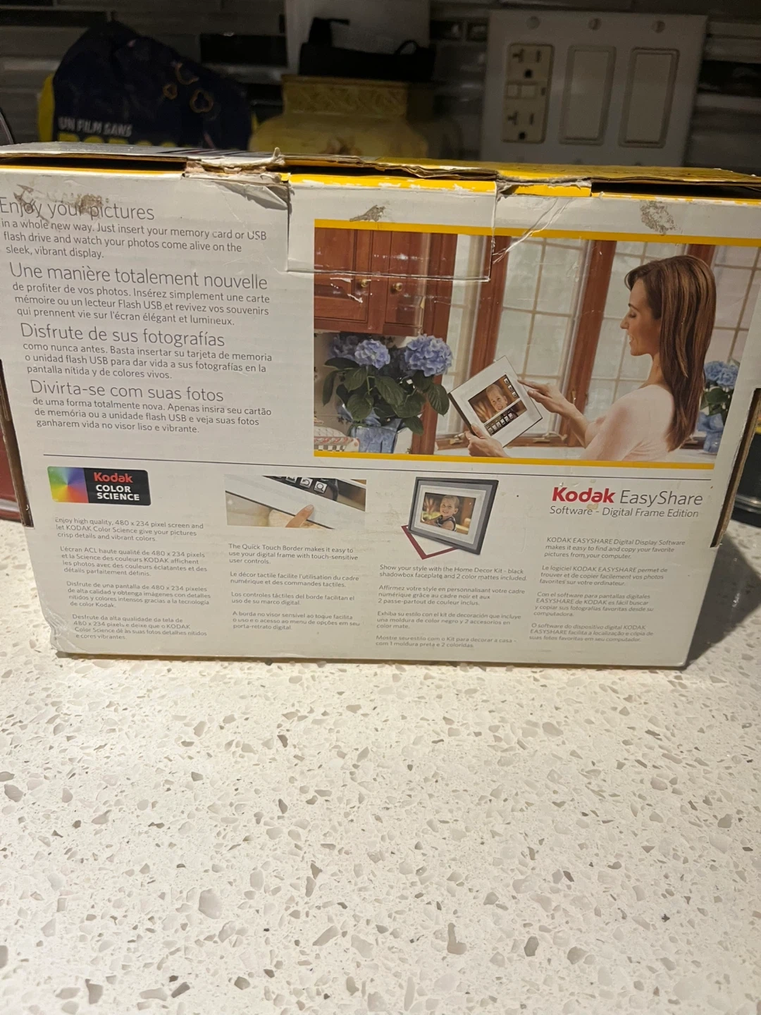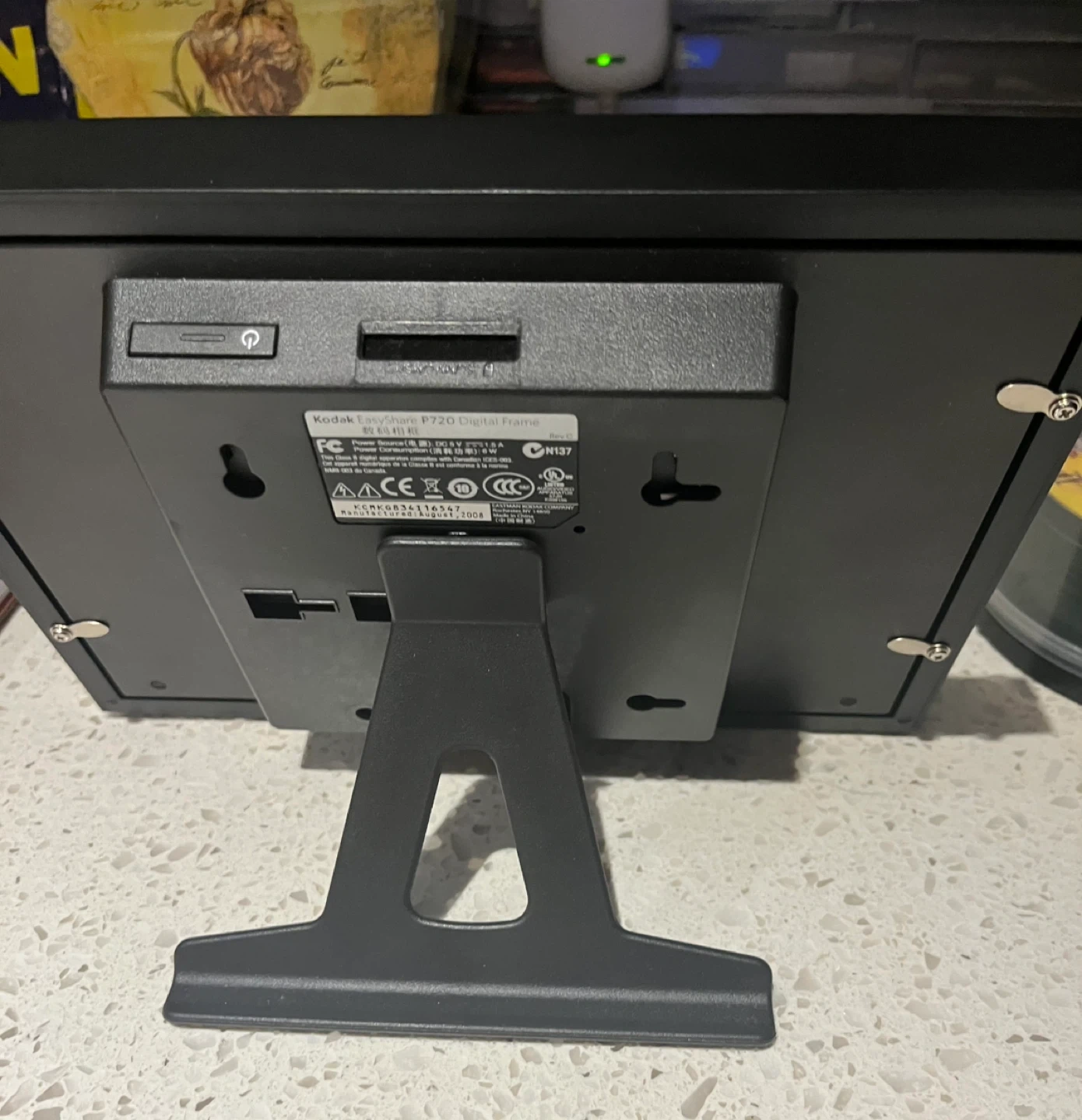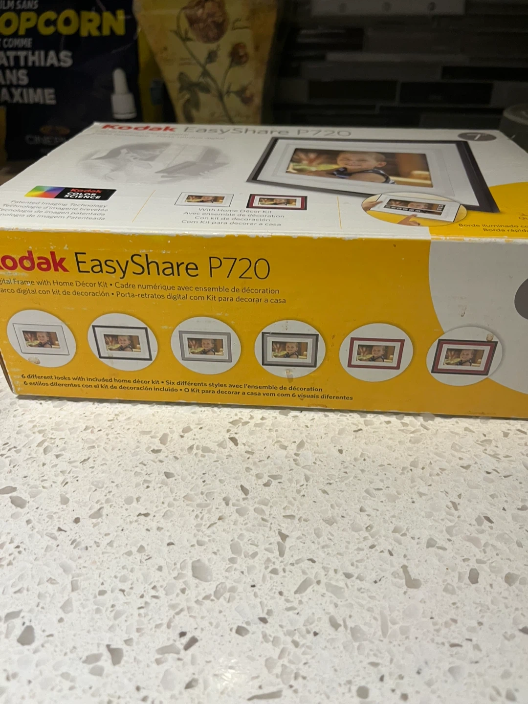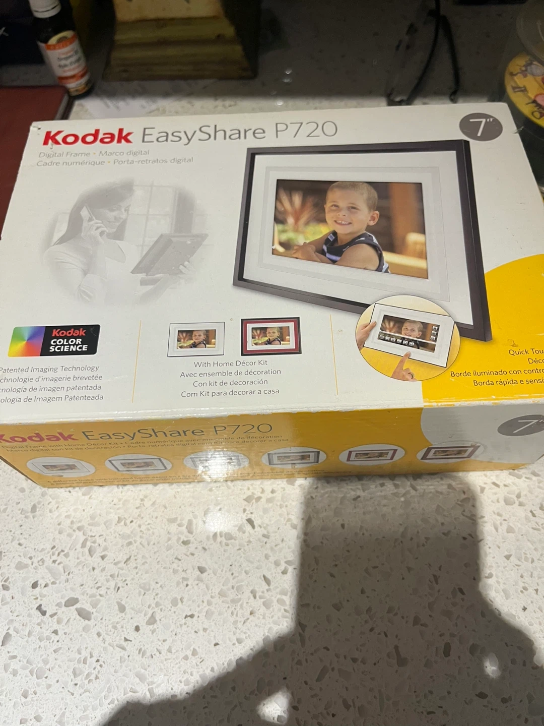 Selling a Kodak EasyShare P720 digital photo frame. It's a 7-inch frame that lets you display your favourite photos with ease. Comes with a home decor kit to match your style. The frame is in good condition (it has some lines check pictures) Its ready to use to showcase your cherished memories!