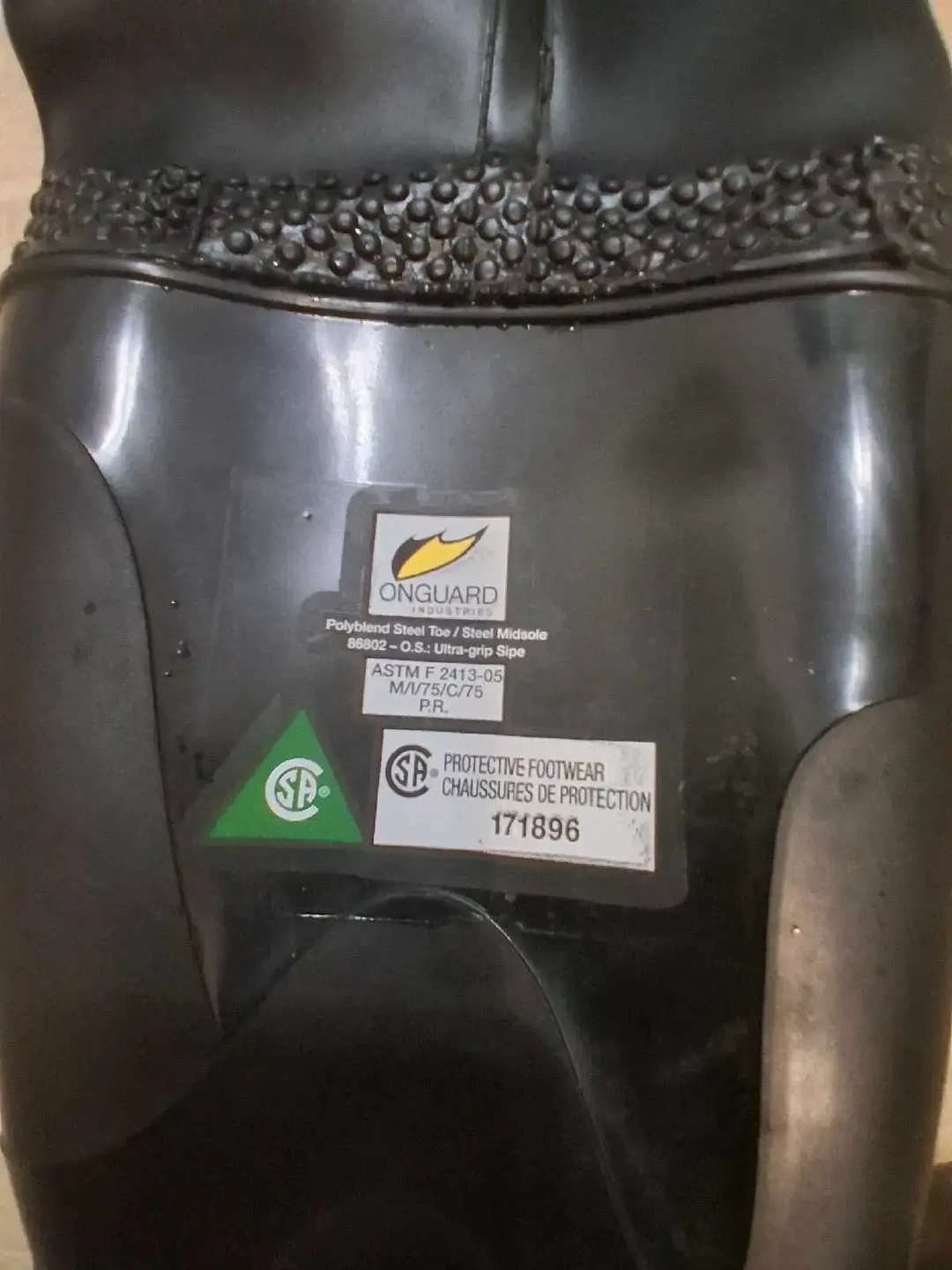 26I'm selling a pair of used Onguard waders, perfect for any wet job. Fishing, hunting. Outdoor heavy duty workload winter jobs etc! These waders feature a polyblend steel toe and steel midsole for added protection. They are in good condition and ready for their next adventure. Here are some additional features: * Steel toe * Steel Midsole * Ultra-grip Sipe Don't miss out!