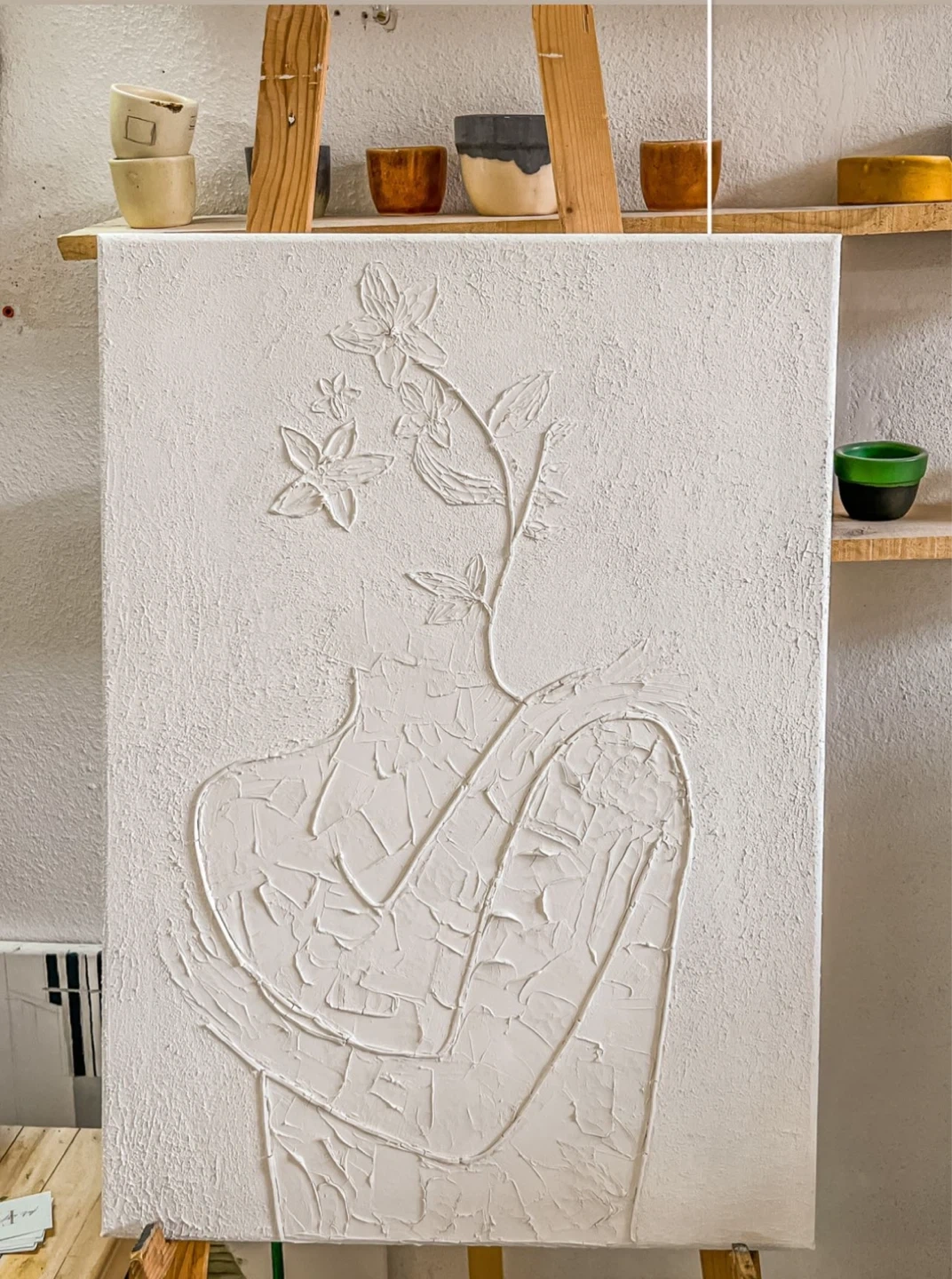 Selling a textured white abstract art canvas. It features a unique design with raised details, giving it a tactile and visually interesting look. Perfect for adding a touch of modern art to your home decor
