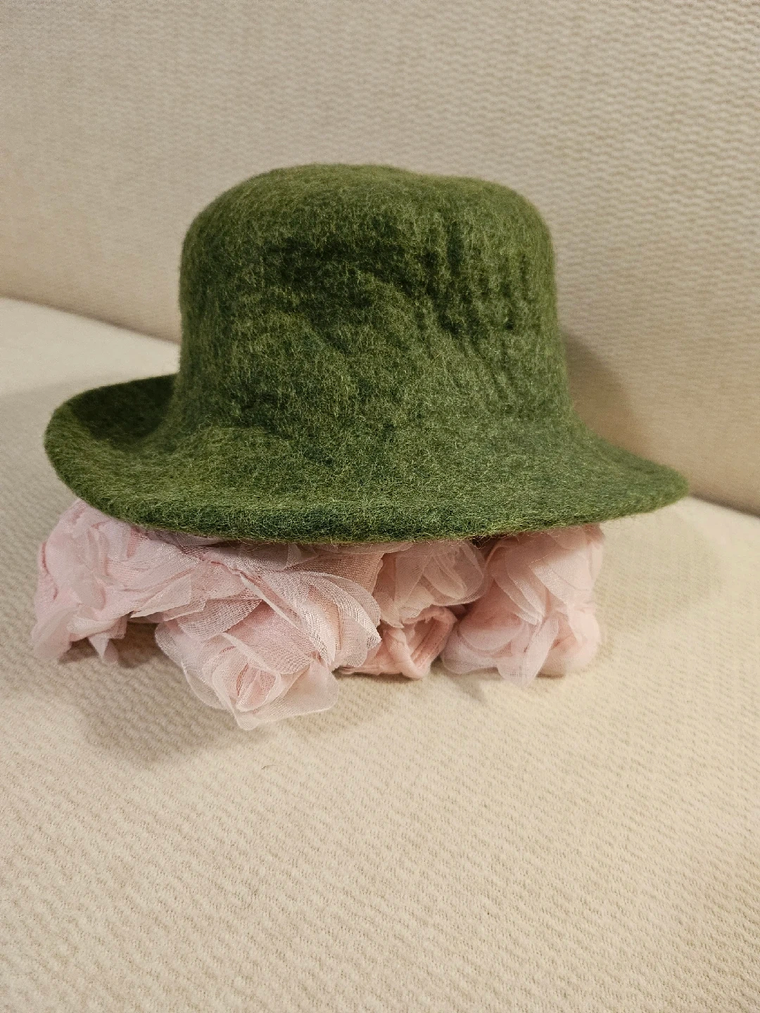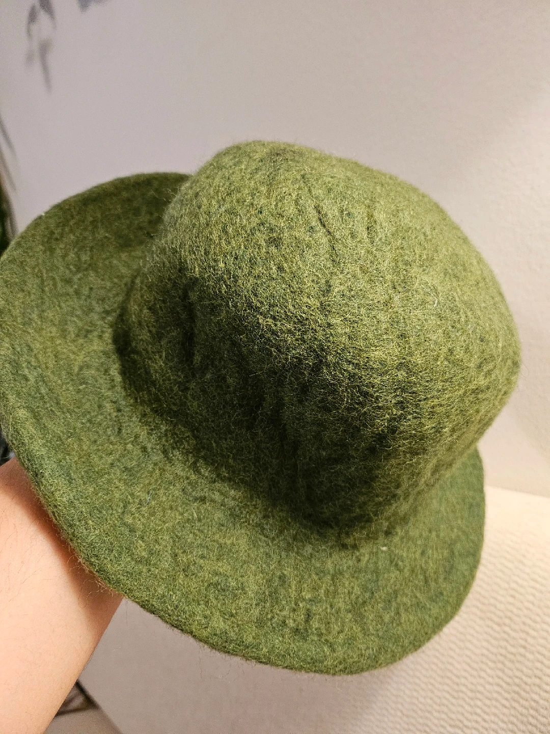 355A lovely green wool hat, perfect for adding a touch of cozy style to your wardrobe! It's in great condition and ready for a new home