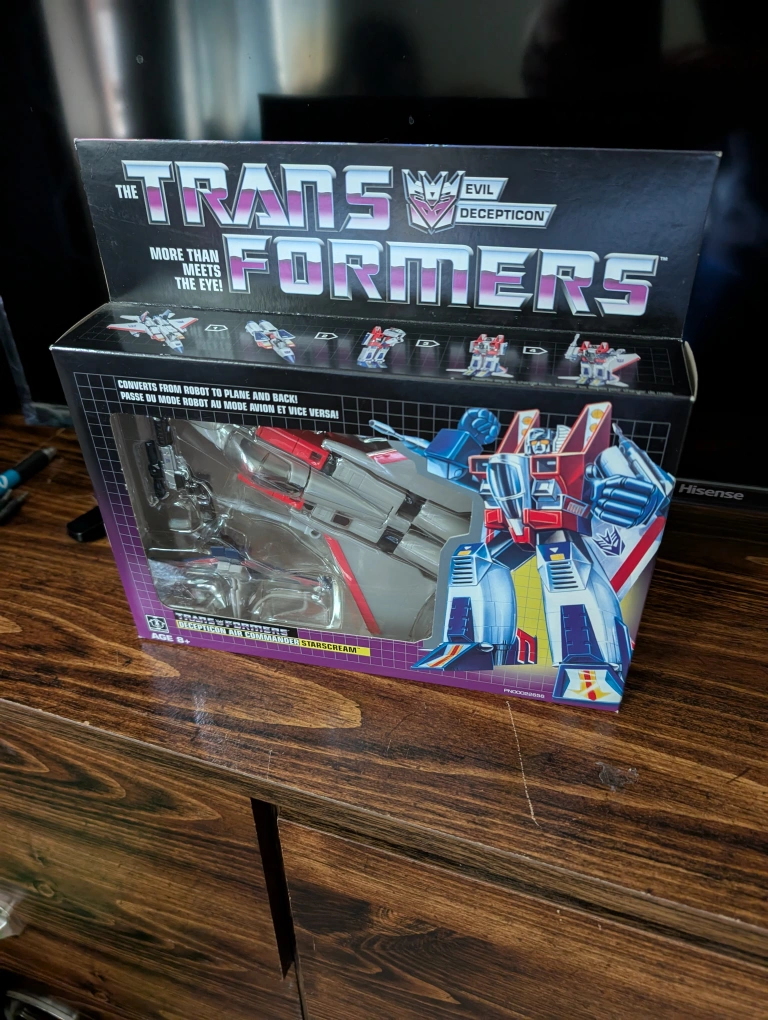 Selling a Transformers G1 reissue of Starscream! Comes in the original box and converts from robot to plane and back. Great for collectors!