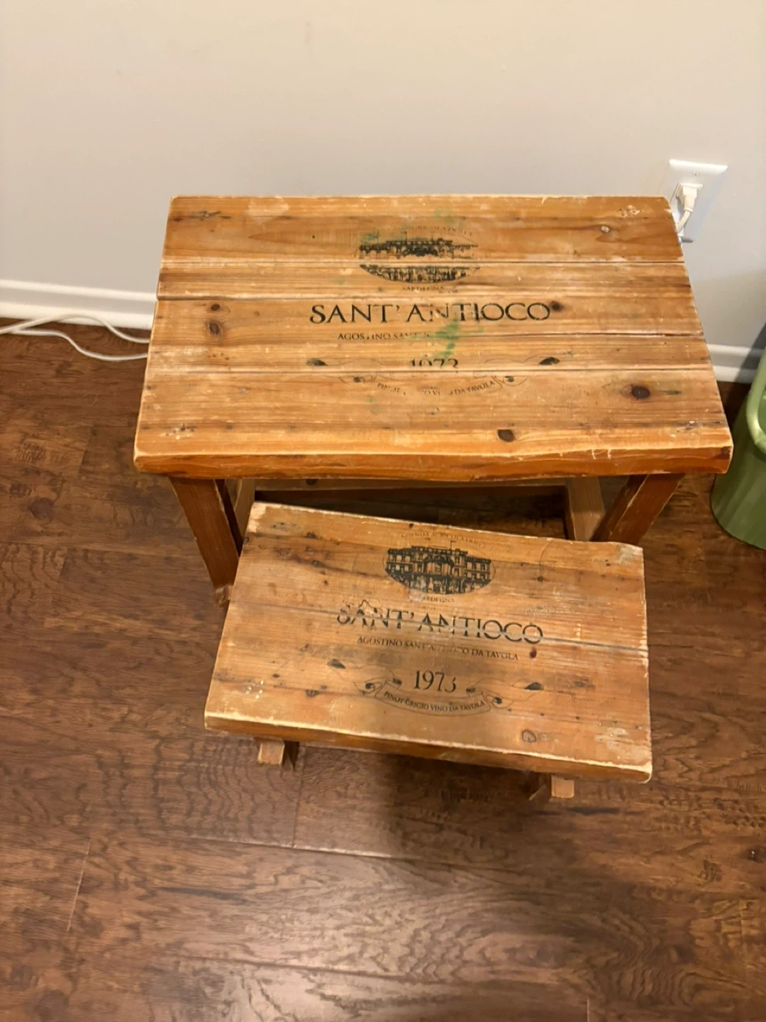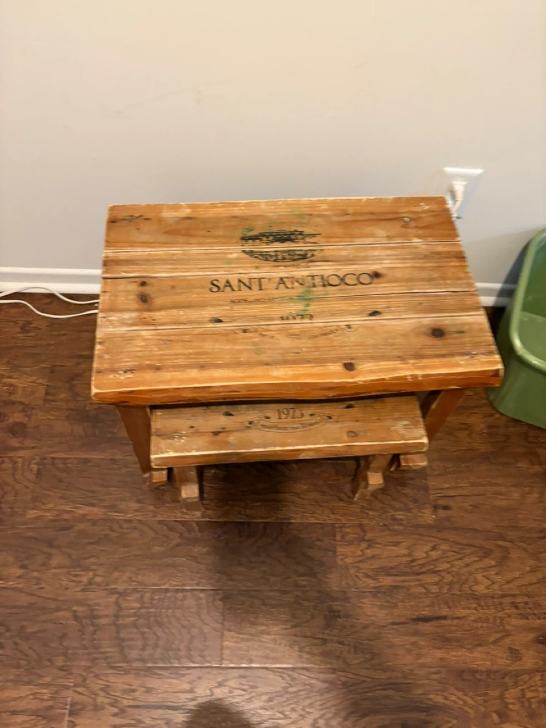 56Selling a charming set of wooden tables featuring the Sant Antioco design! These tables have a rustic, vintage look and would be a unique addition to any home. The set includes two tables of different sizes,