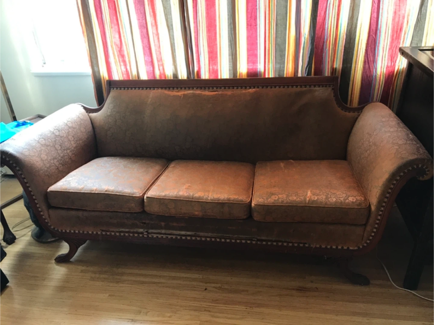 -Antique Duncan Phyfe couch, my grampa found this couch in a barn in the 1960s covered in horse hair. He took it home and had it beautifully restored. So many memories in this family sofa but it’s in dire need of a new restoration. We are moving and it has to go. Hoping someone wants to bring it back to life. Could be very beautiful again.