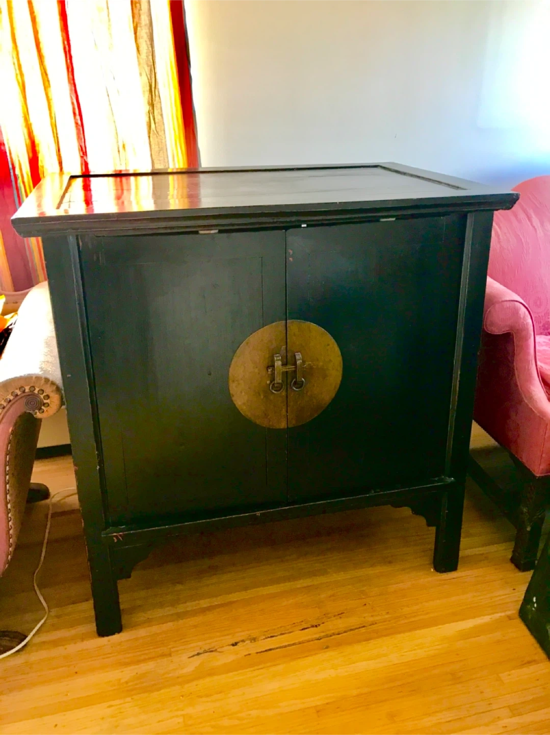 -An antique reproduction Chinese cabinet, no shelves inside just a big ol cabinet.