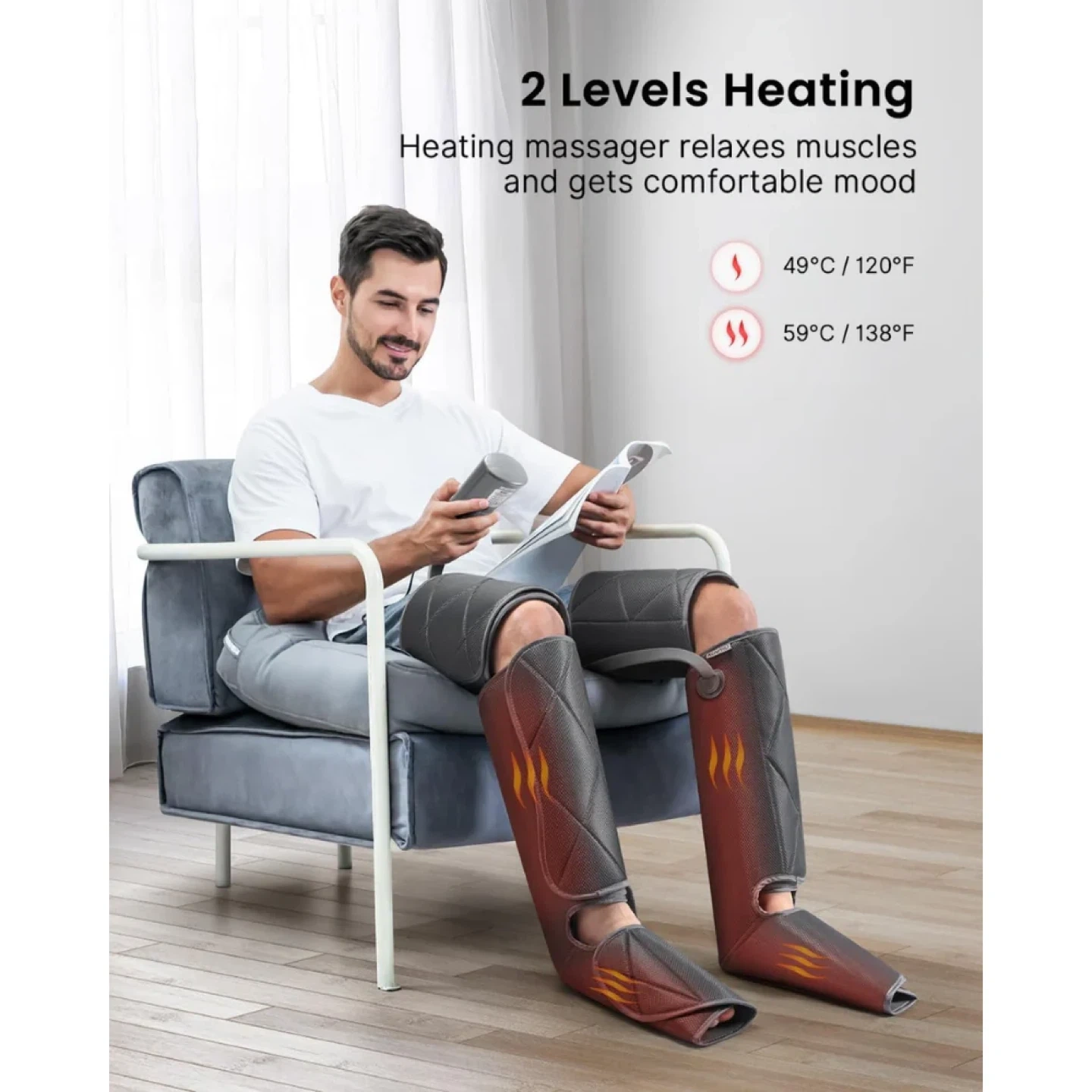 Get ready to relax with this RENPHO leg massager! It features an air compression system with 2x8 large airbags. There are 6 massage modes and 3 intensity levels to choose from. Plus, enjoy 2 levels of heat to really relax your muscles. The wraps are adjustable and made with soft mesh for comfort. Read the instructions in the pictures use