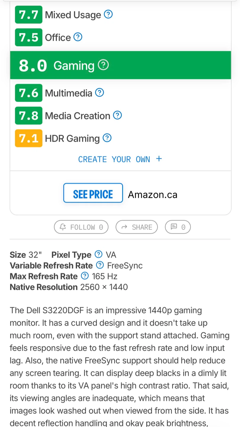 Looking to sell my Dell S3220DGF 32" curved gaming monitor! It has a native resolution of 2560 x 1440 and a max refresh rate of 165 Hz.