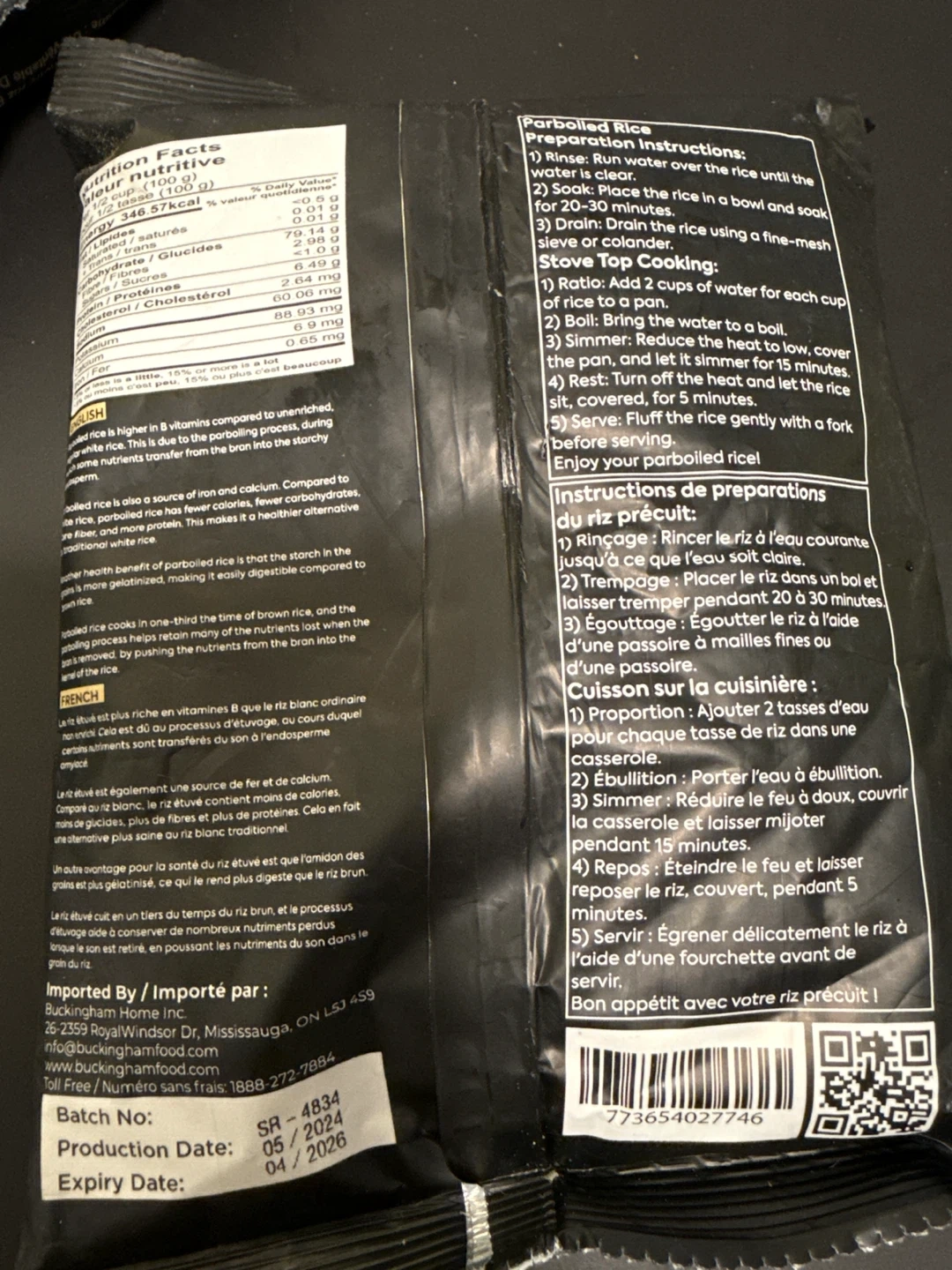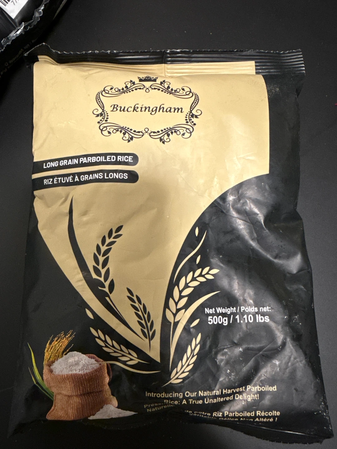 924a bag of Buckingham Long Grain Parboiled Rice! It's a 500g/1.10 lbs bag. This rice is your natural harvest parboiled, a true unaltered delight! The expiry date is April 2026