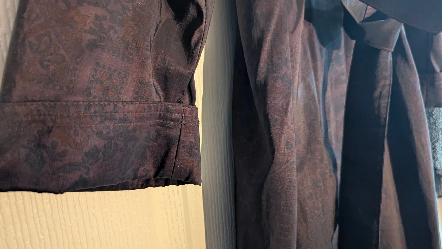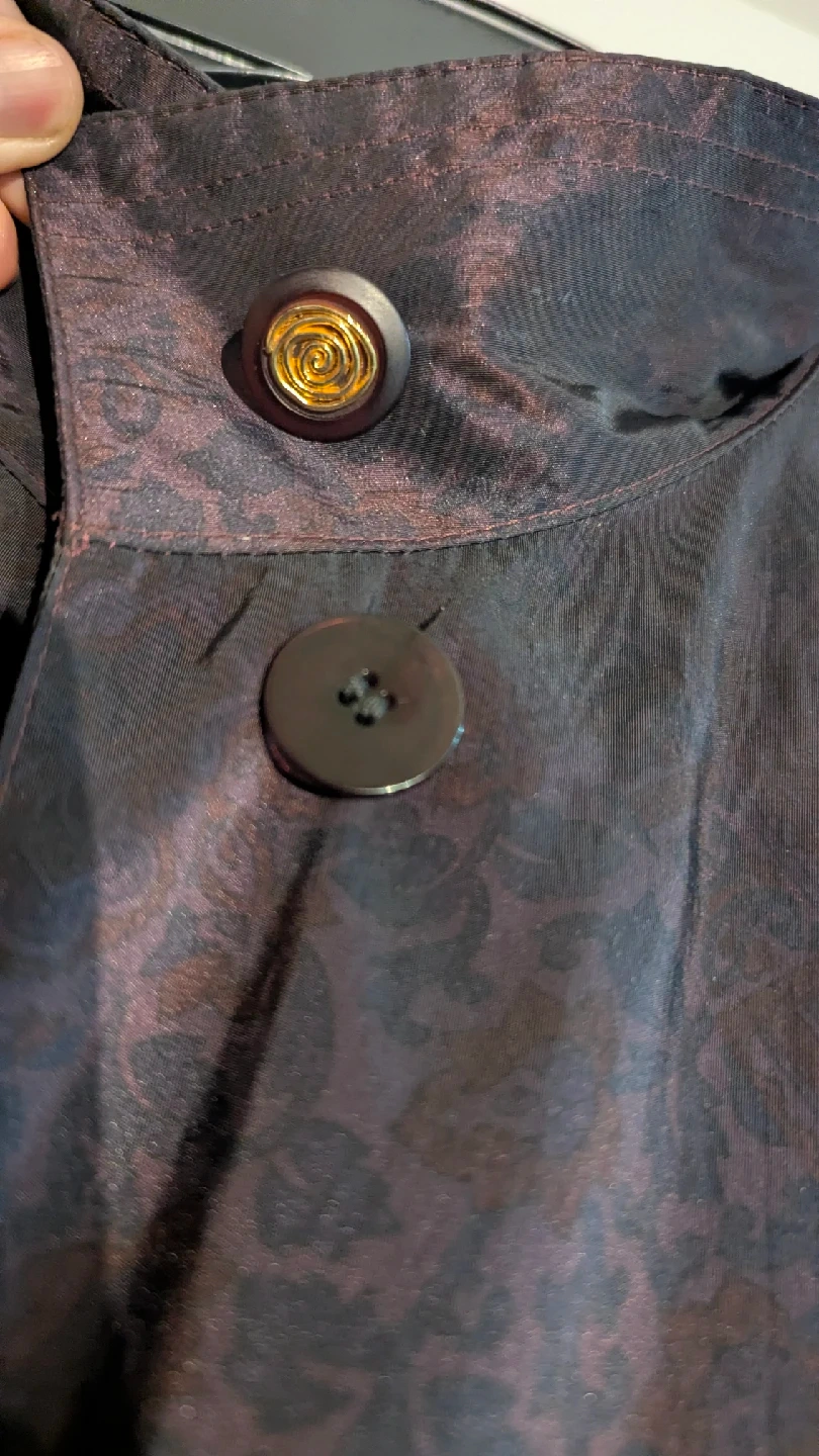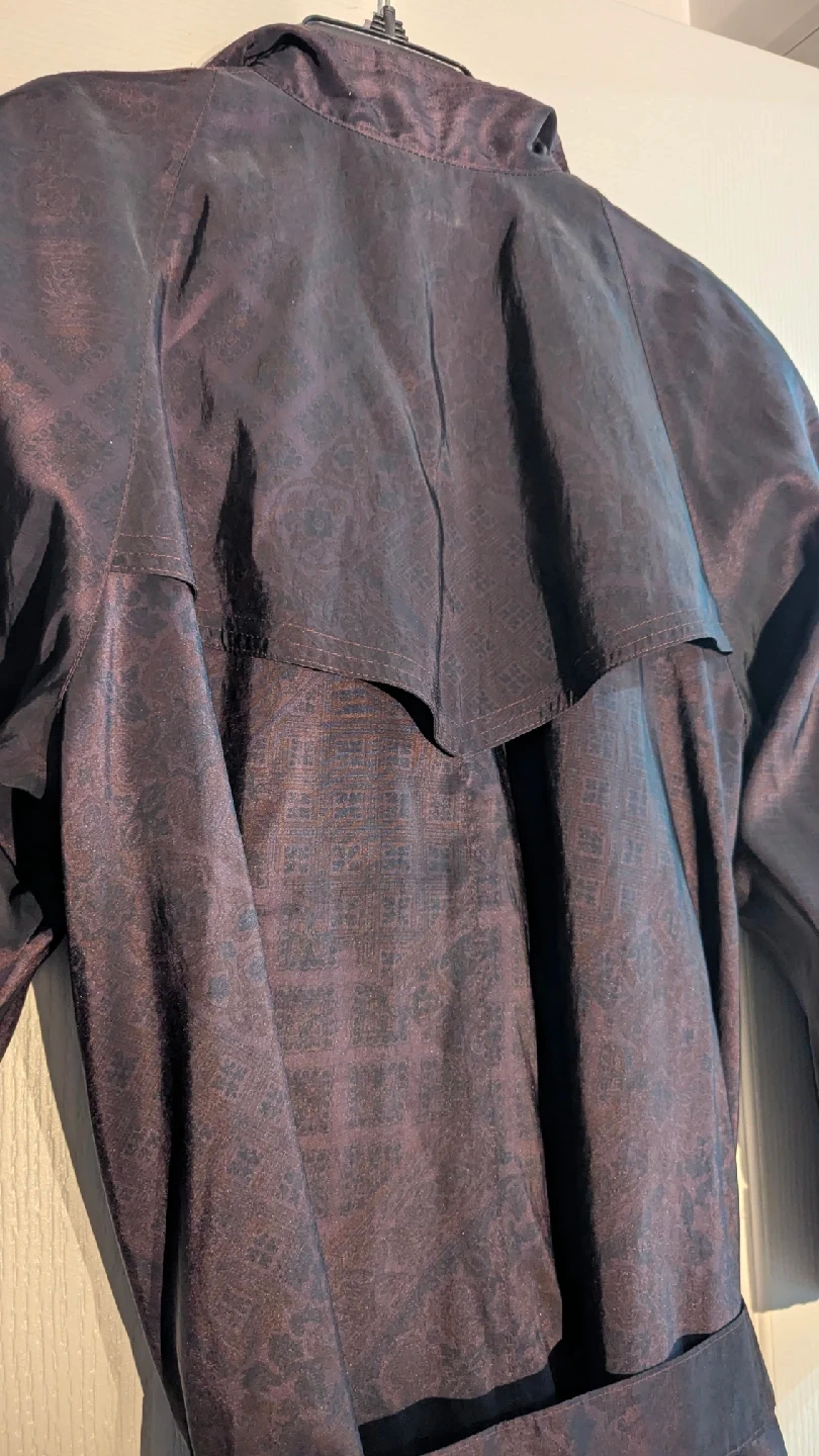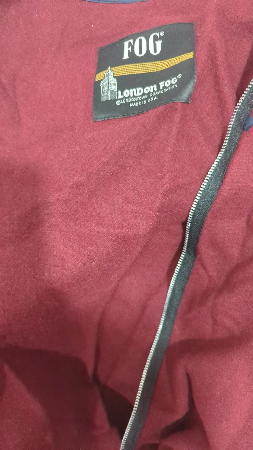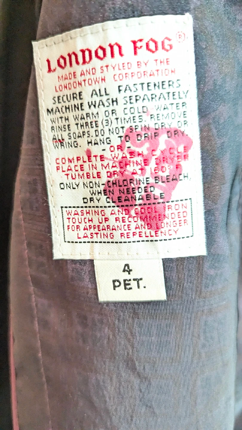 Here's a London Fog trench coat for ladies! It's a size medium to large and features a stylish design. Perfect for keeping you warm and dry on those chilly days! actually vintage and beautifully preserved. silky deep purple exterior with self motif. removble inner lining that adds a extra warmth. comes with a stylish belt for a flattering waist