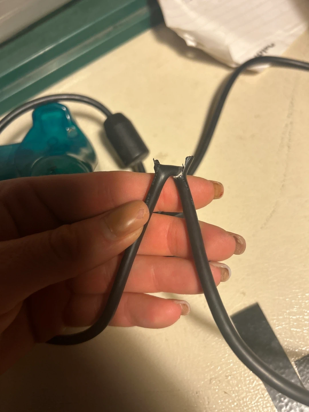 Selling a Sony PlayStation original analog duo controller. Please note that the cable is damaged and needs repair or replacement. The controller itself is in good condition.
