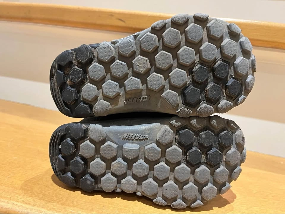 Bought from MEC. Slight wear on front toe area but otherwise in perfect condition. Very warm and toasty while being very comfortable and light (unlike most winter boots). Fully waterproof. Size: 9 kids. Brand: Baffin