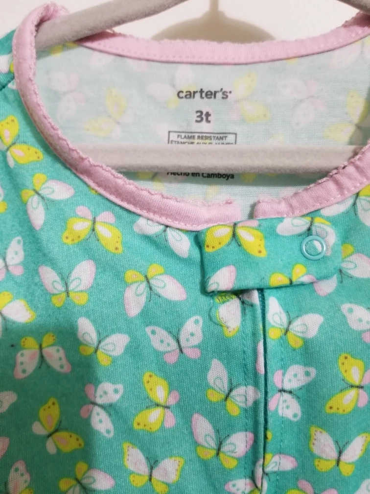 Snuggle up in this adorable Carter's pajama onesie! It's a size 3T and features a cute butterfly pattern on a soft, teal background, perfect for a cozy night's sleep.
