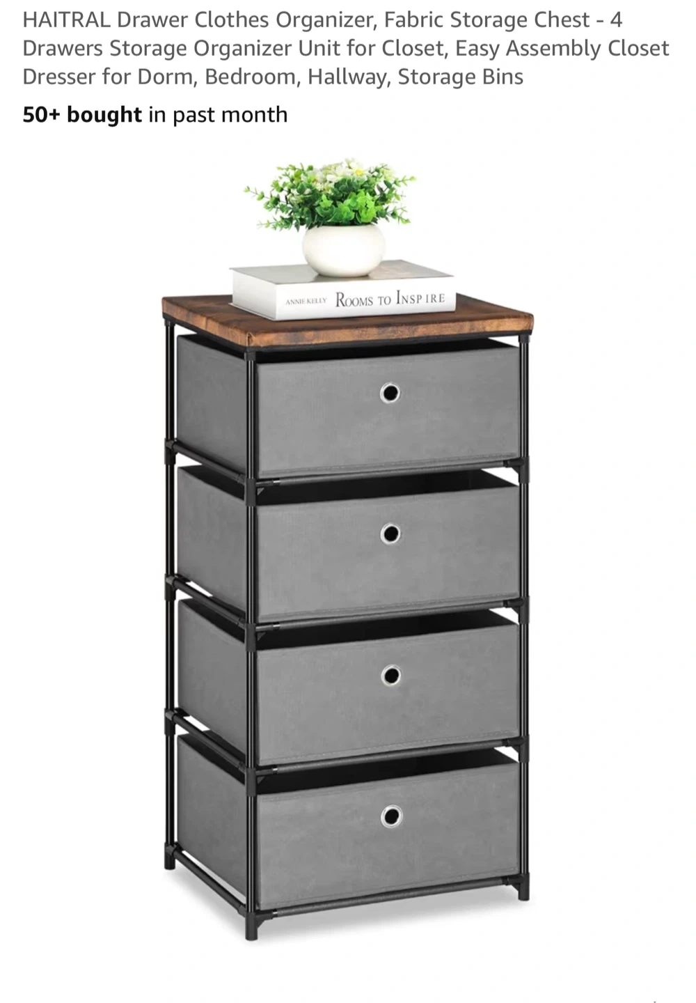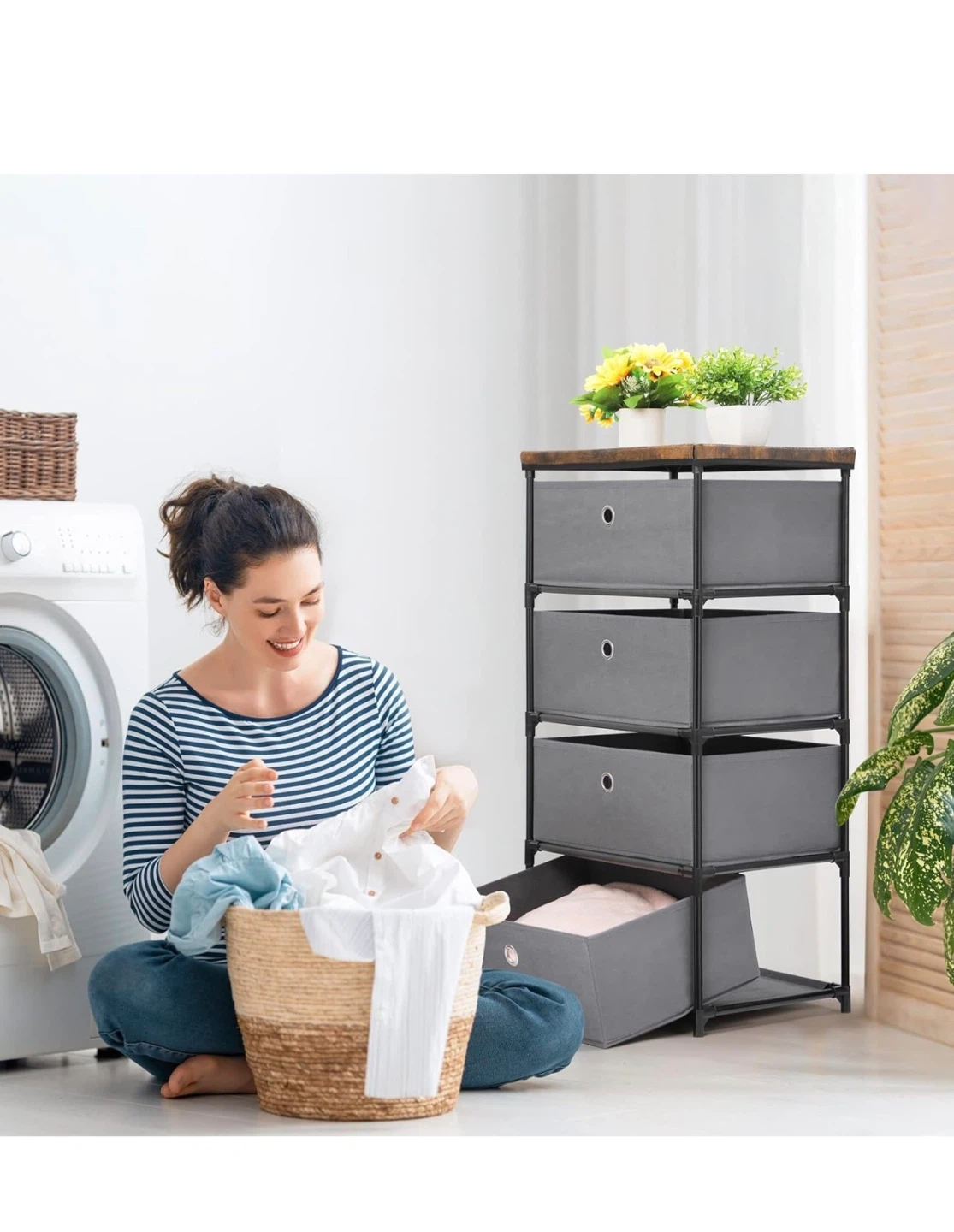 This 4-tier dresser drawer organizer is perfect for closets, dorms, bedrooms, hallways, and more! It's easy to assemble and great for storage. The drawers are made of breathable, high-quality fabric, and the handles are durable and easy to pull
