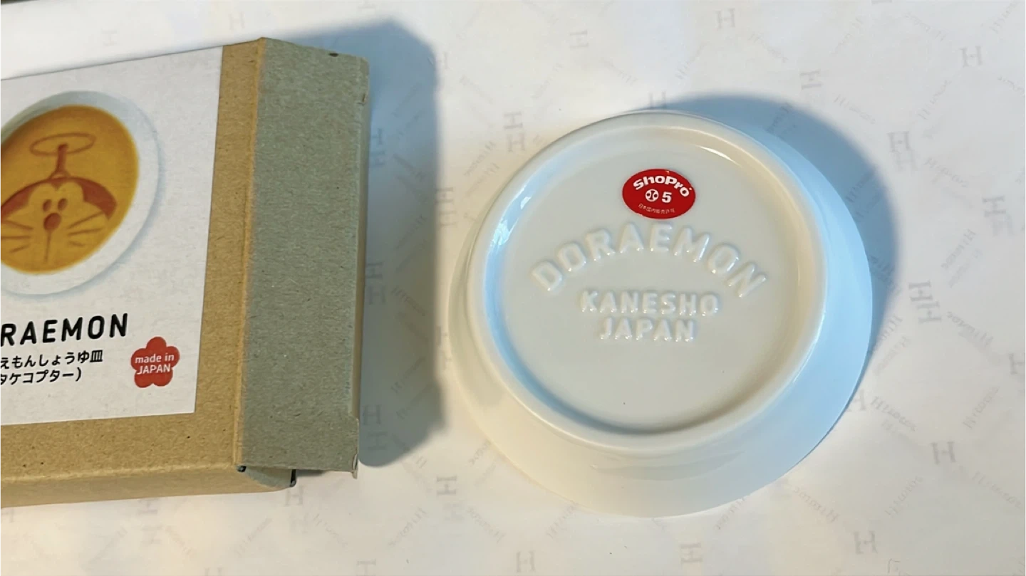 I'm selling a brand new Doraemon soy sauce plate! It's a super cute dish with Doraemon's face embossed in the bottom. When you pour soy sauce in, it reveals his face!