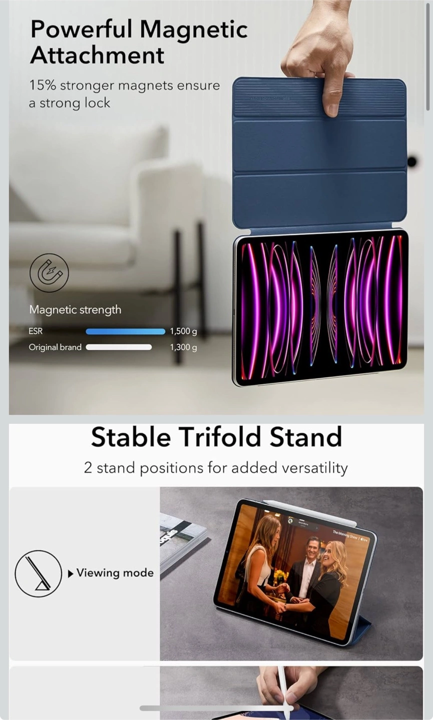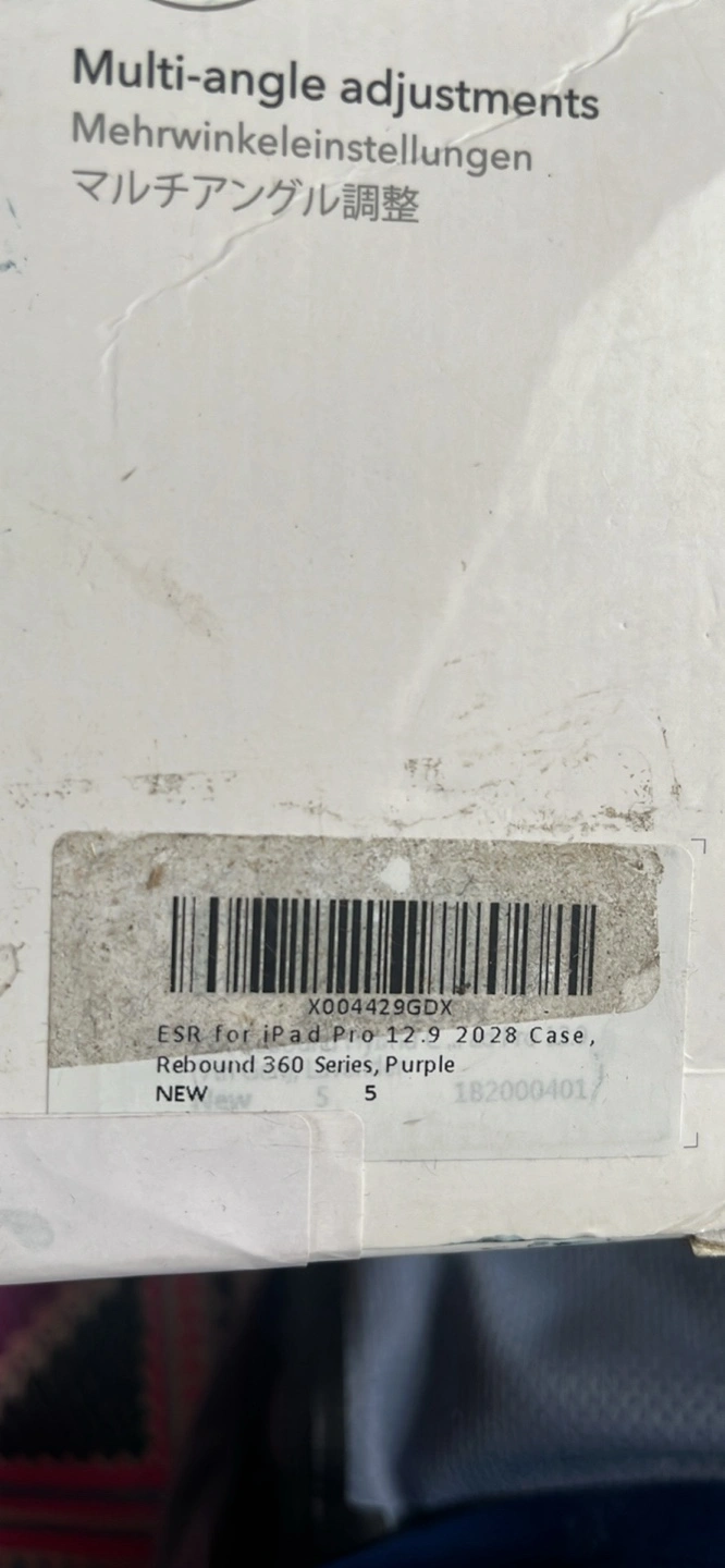 Selling a new ESR Rebound 360 Series case for the iPad Pro 12.9 inch. It's a beautiful purple colour and offers multi-angle adjustments. It also features full Pencil 2 support with magnetic pairing and wireless charging. This case provides lightweight protection, defending against scratches without the bulk. Enjoy powerful magnetic attachment and a stable trifold stand for added versatility