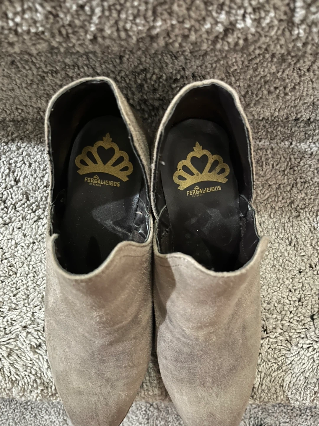 Selling a pair of Fergalicious ankle booties in a lovely grey suede! They're a women's size 8 and have a cute, versatile style that would look great with so many outfits. The heel is a comfortable height for everyday wear.