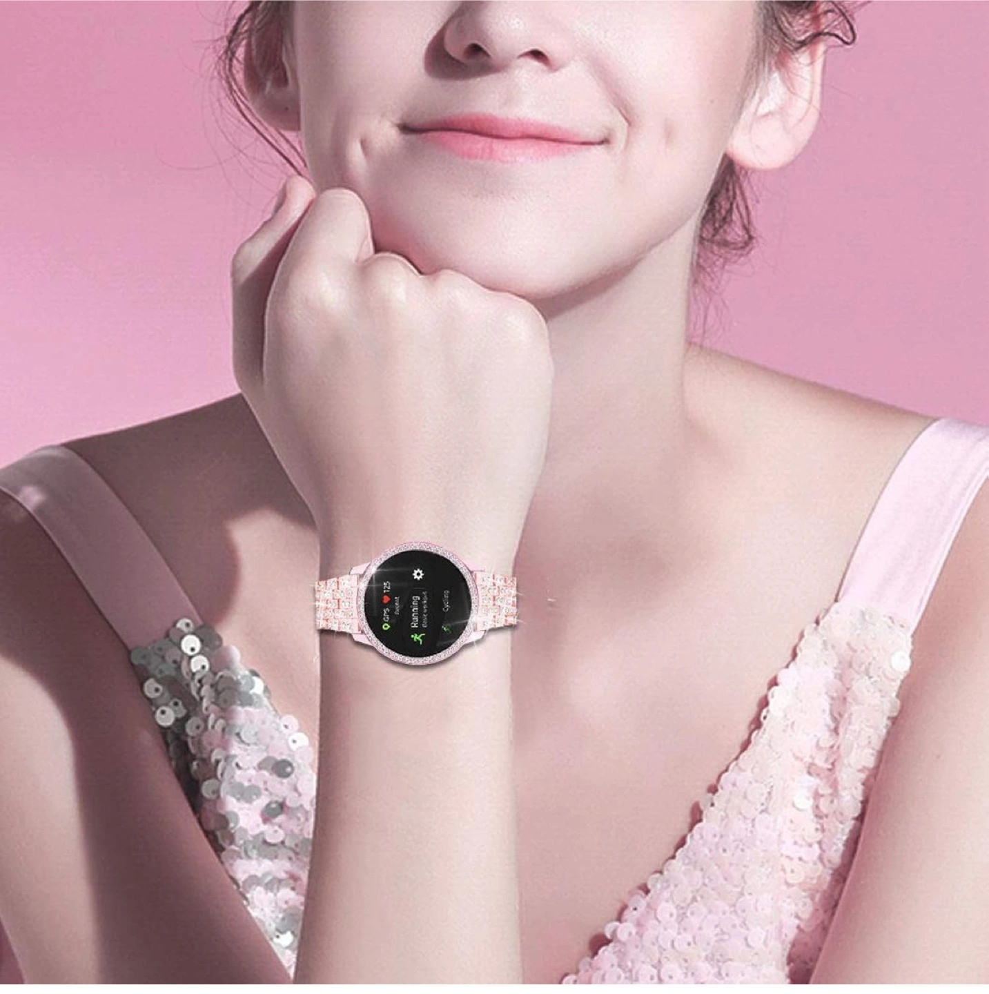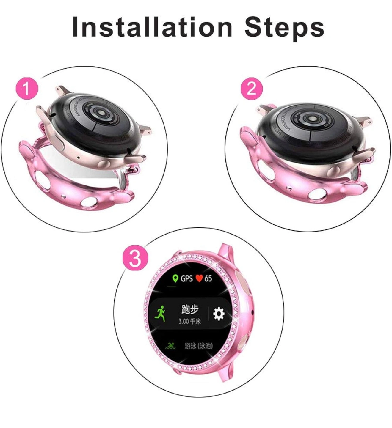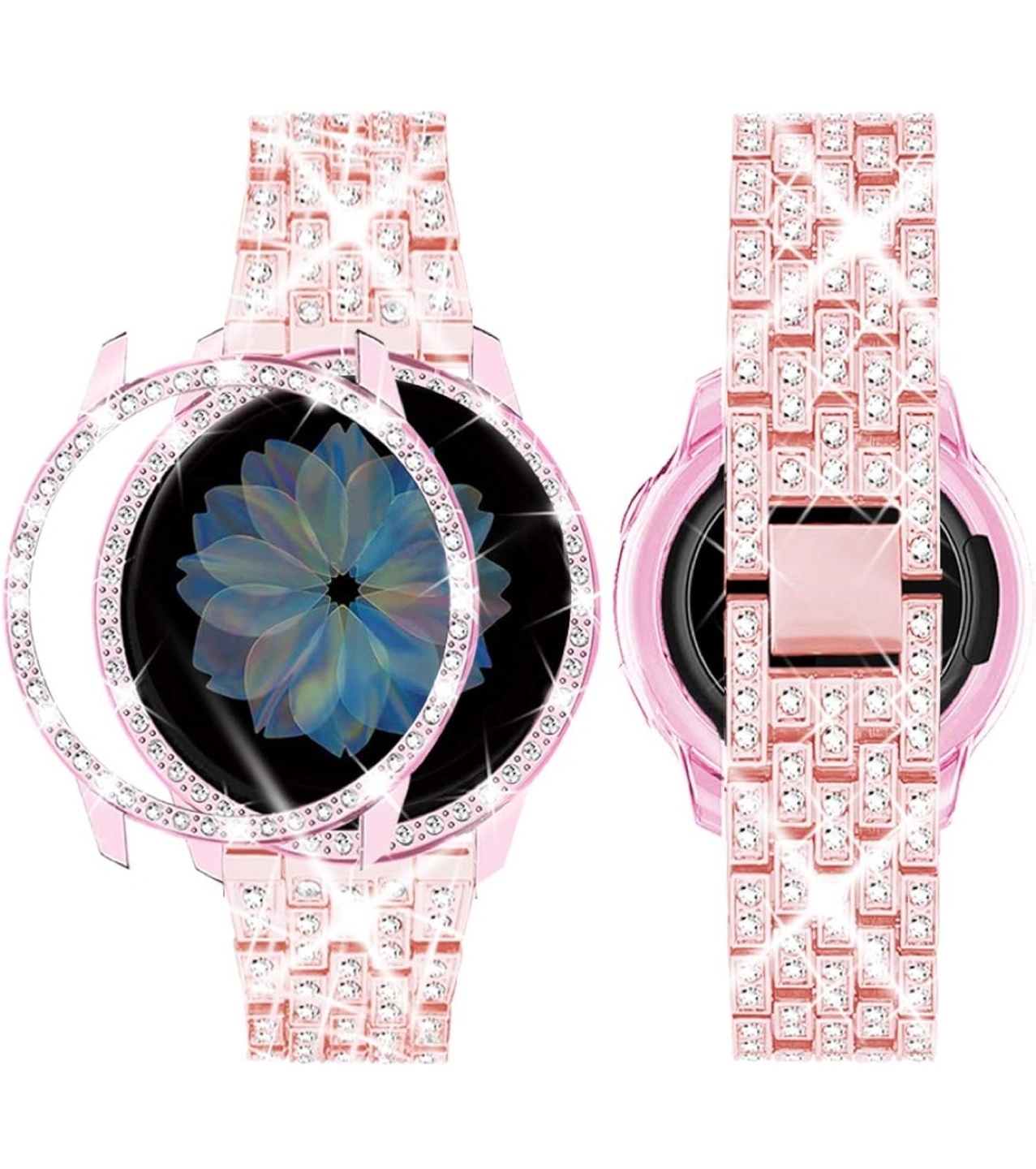 106Add some sparkle to your Samsung Galaxy Watch with this pretty pink rhinestone case! It's in great condition and easy to install, giving your watch a stylish and unique look