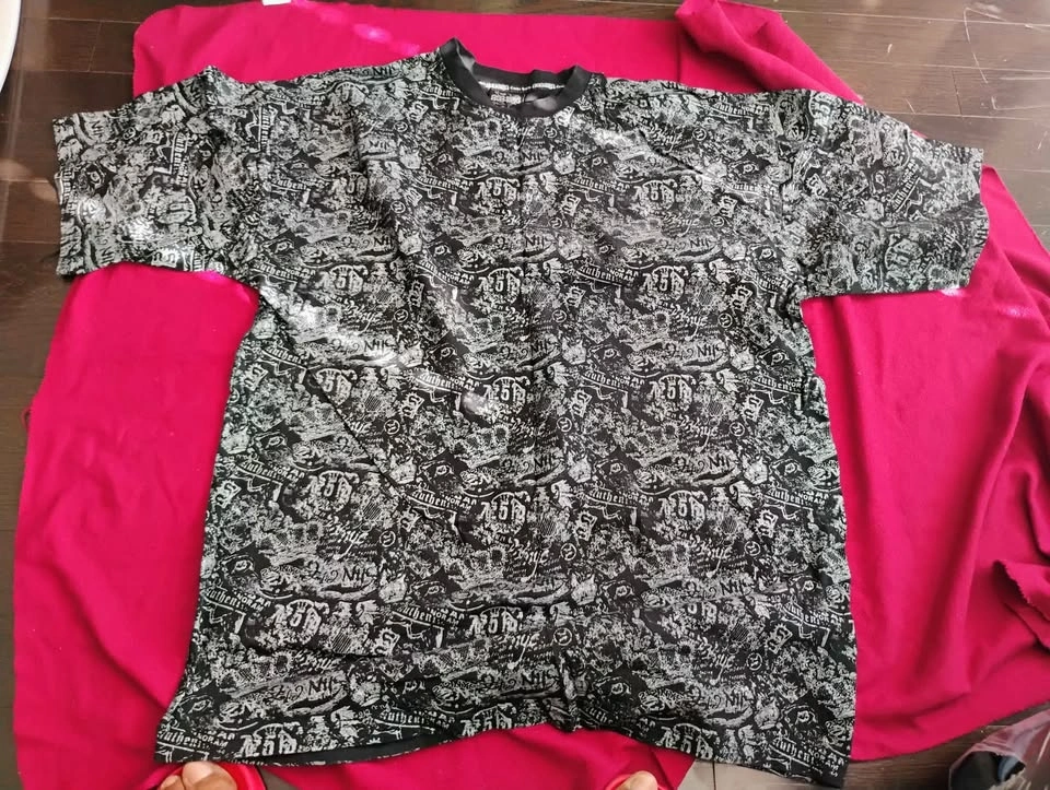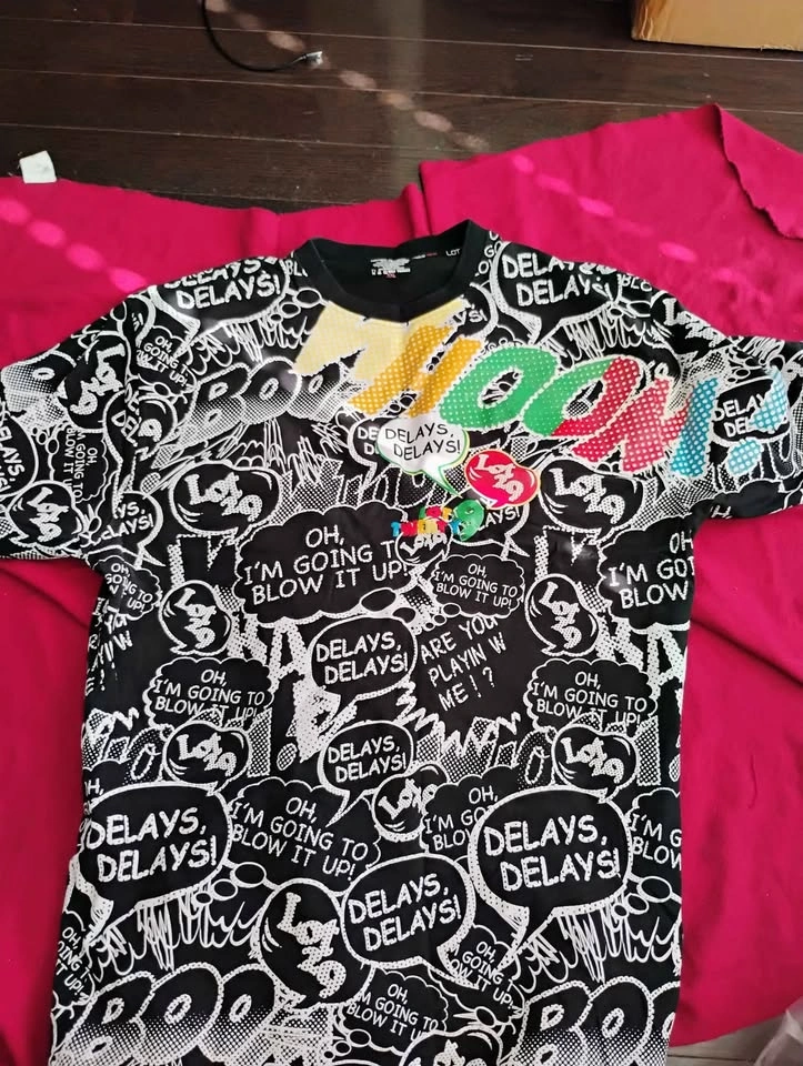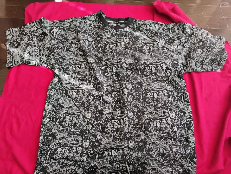 10Lot 29 comic shirt $20 Worn maybe once $10 basic black, white and red shirt Shimmering shirt, $15. Basically new.