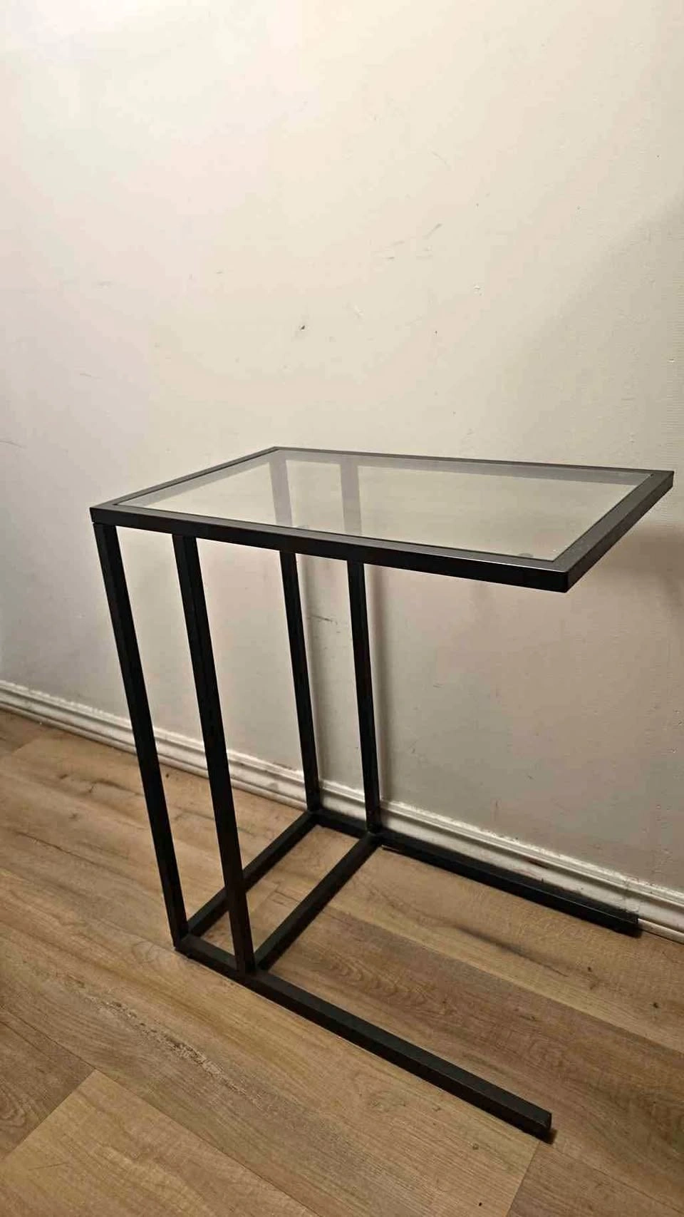 Minimalist and stylish VITTSJÖ laptop stand from IKEA. Features a sturdy metal frame with a glass top, perfect for working, reading, or keeping beside your couch or bed. Excellent condition, no cracks or damage. Dimensions: 35x65 cm (13 3/4x25 5/8"). Color: Black with clear glass top. 📍Pickup: 1300 Mississauga Valley Blvd.