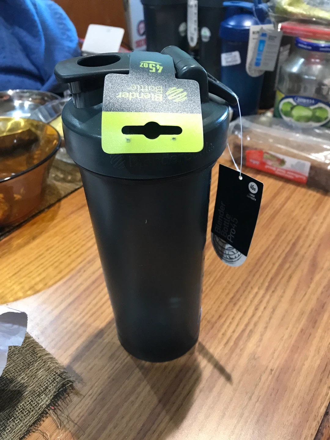 Selling a Blender Bottle Pro45 shaker bottle! It's a 45oz bottle, perfect for mixing protein shakes or other drinks. It features a 13-gauge blender ball for thicker shakes and a rounded base. It's also BPA free!