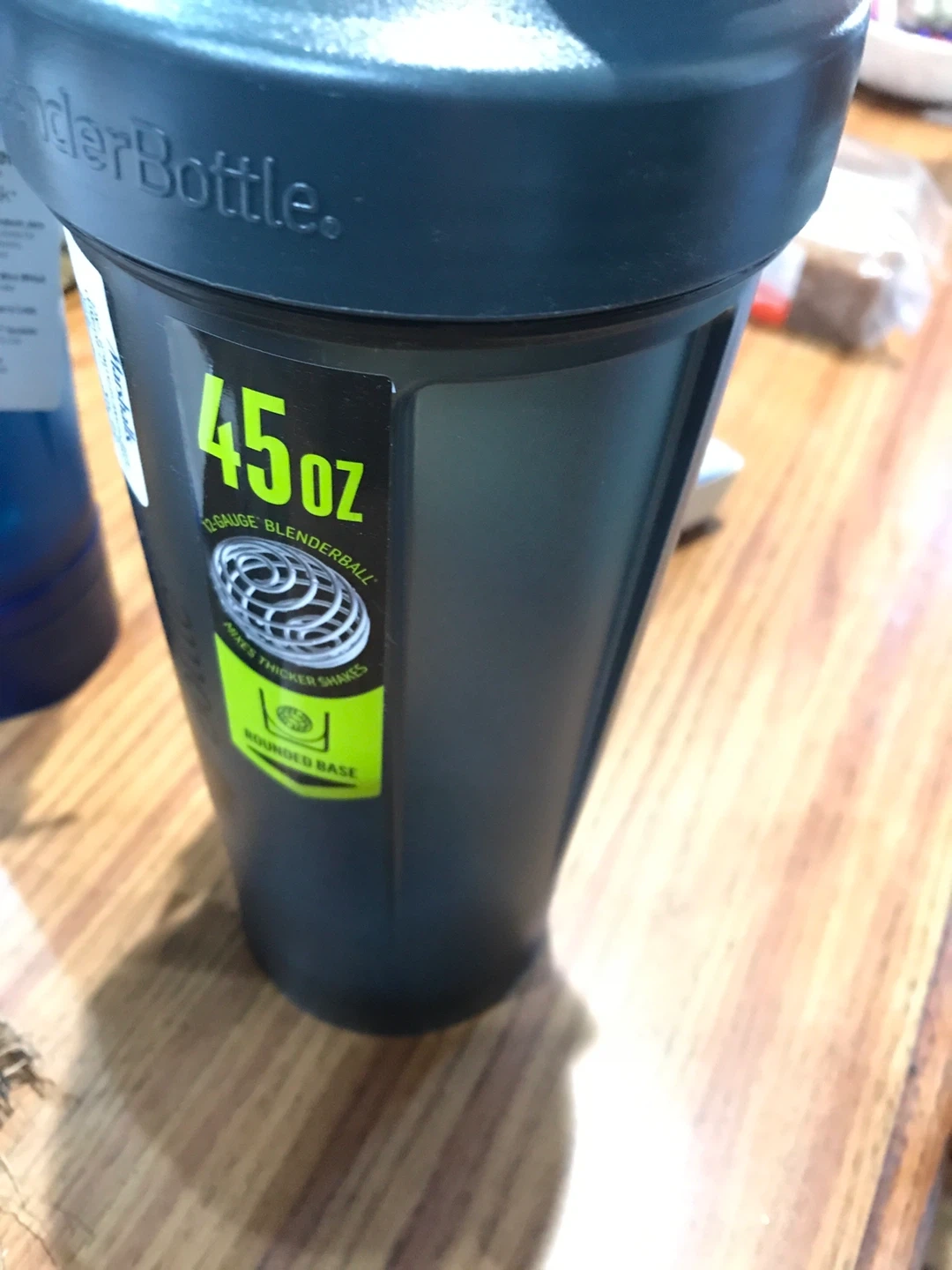 Selling a Blender Bottle Pro45 shaker bottle! It's a 45oz bottle, perfect for mixing protein shakes or other drinks. It features a 13-gauge blender ball for thicker shakes and a rounded base. It's also BPA free!