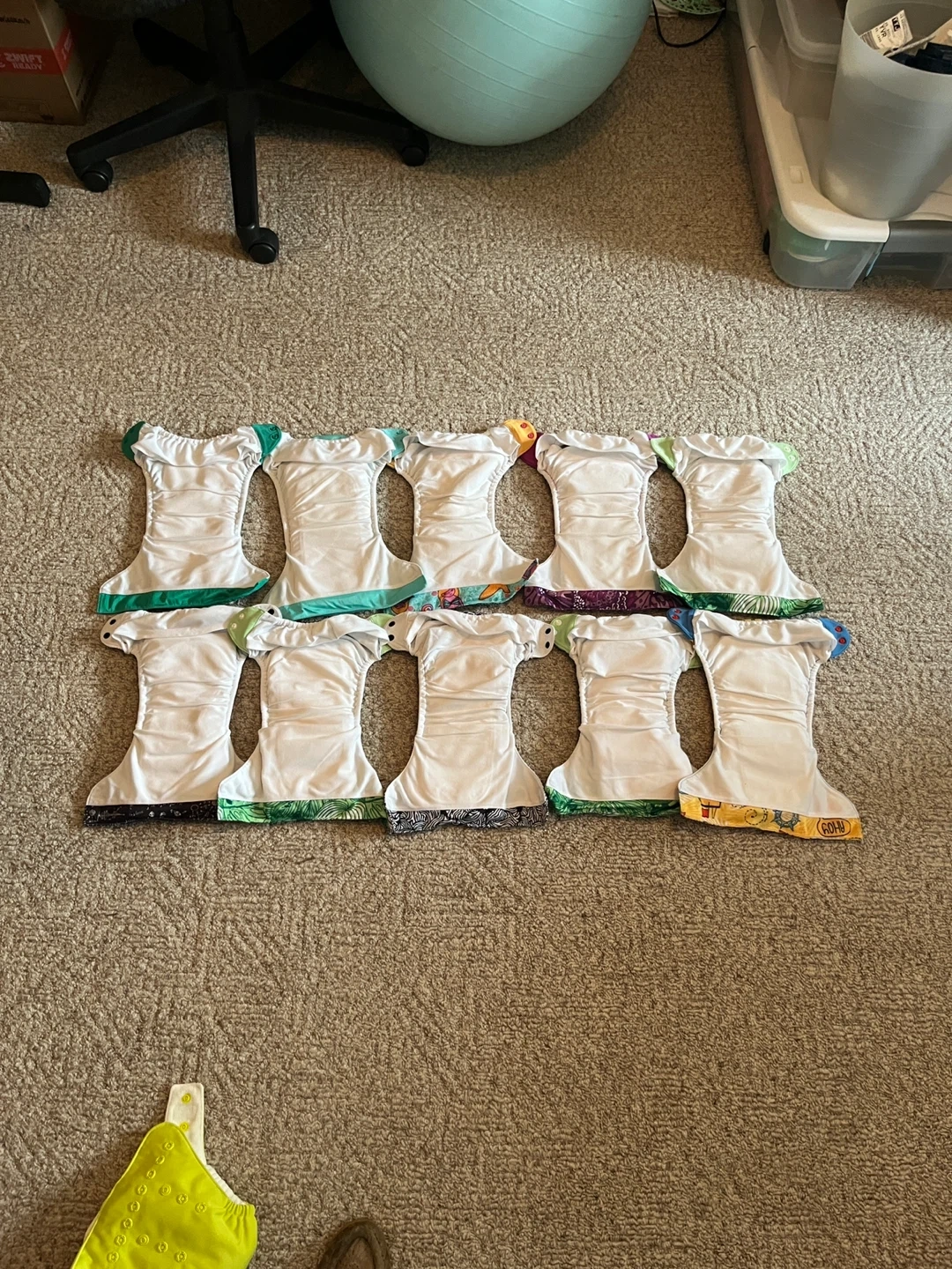Selling a mixed lot of cloth diapers in various fun prints! These are in great shape and ready for a new home. They feature adjustable snaps for a comfortable fit. Perfect for eco-conscious parents!