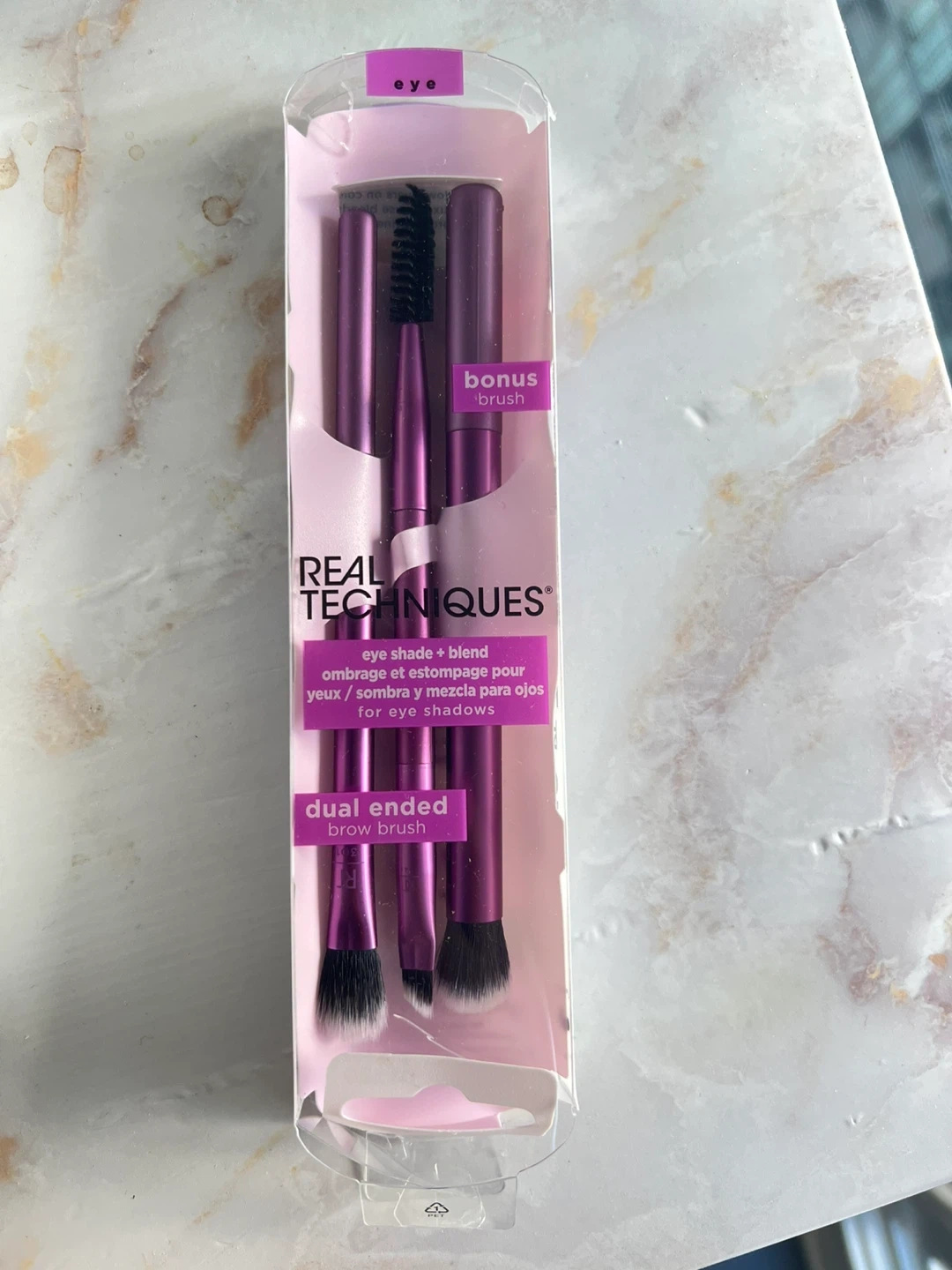 62New and never open RT301 base brown brush RT300 deluxe crease brush RT343 spoolie Selling a Real Techniques eye shade and blend brush set. It includes a bonus brush and a dual-ended brow brush. Great for creating a variety of eye shadow looks! $15 on Amazon Cash only Pickup only