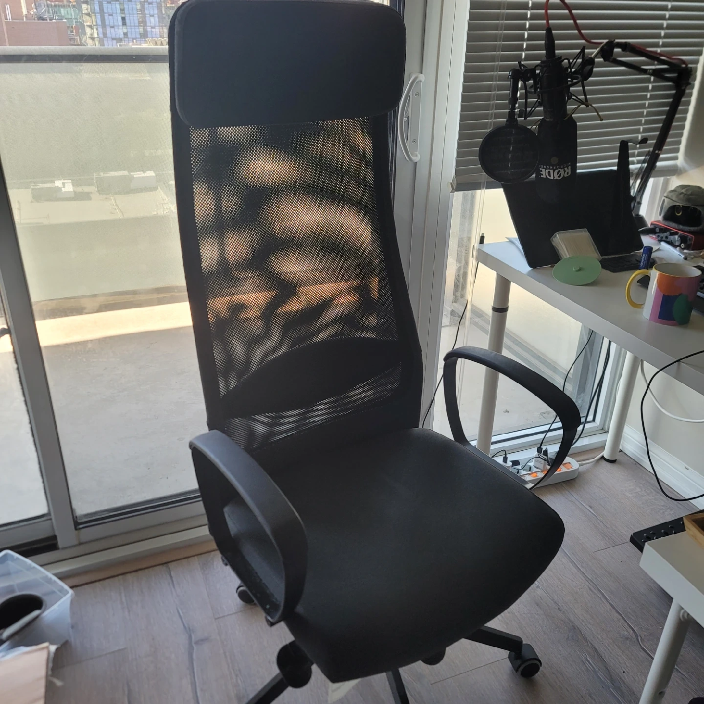 Selling a black office chair, perfect for your home office setup! It's in great condition and ready to provide comfortable support for all your work or gaming needs