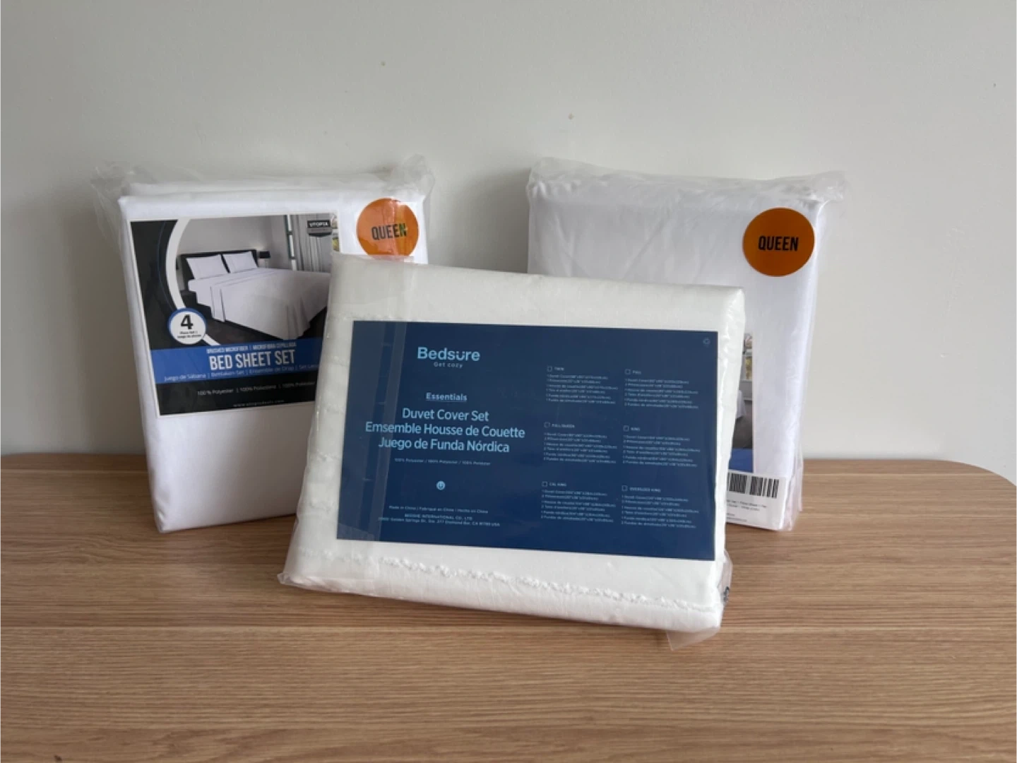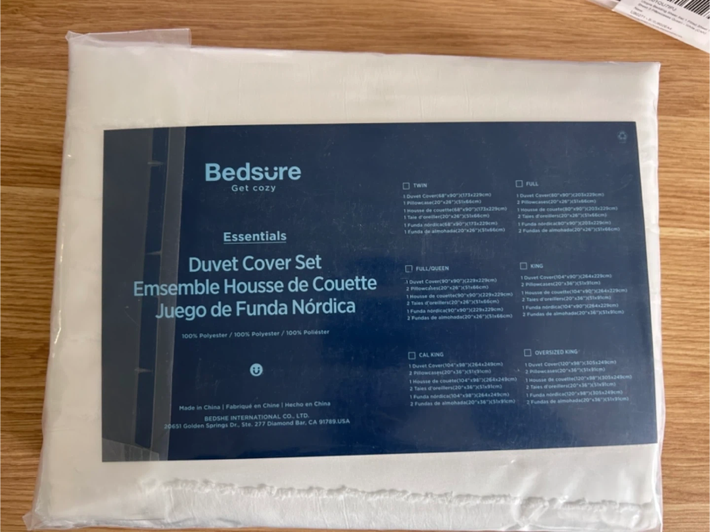 Selling a brand new Bedsure Essentials duvet cover set in Queen size! It's still in the original packaging. The set includes a duvet cover and two pillowcases. Made of 100% polyester for a soft and comfortable feel.