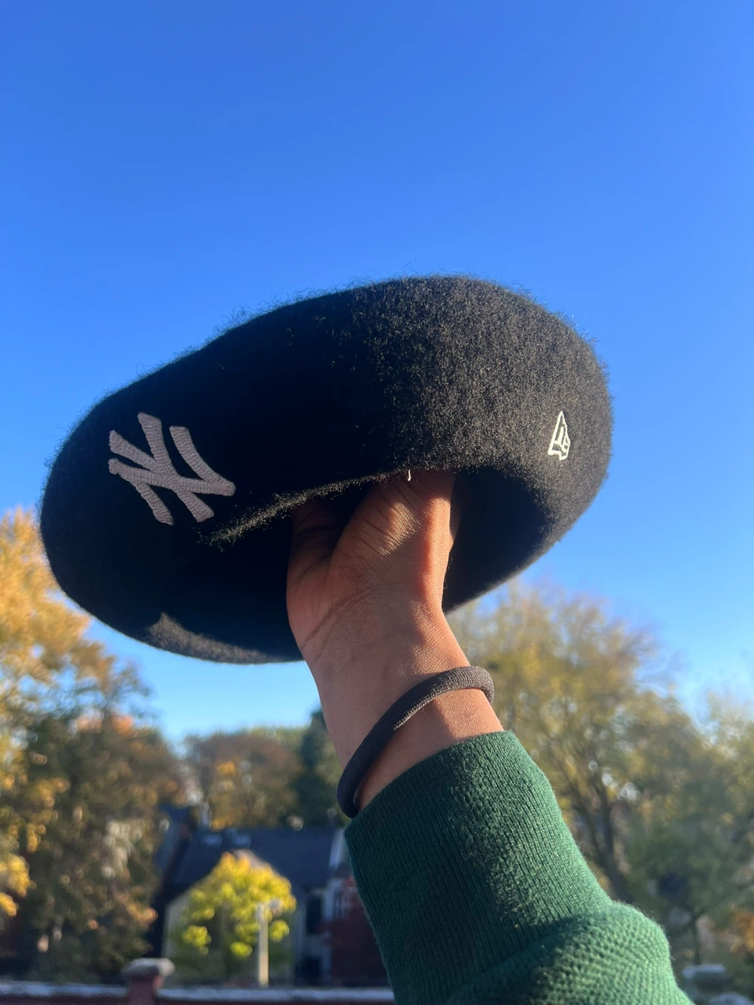 Selling a New Era NY Yankees beret in black. It features the iconic NY Yankees logo. A stylish and unique accessory for any fan!