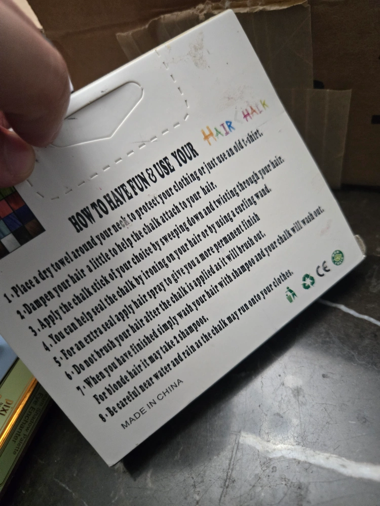 10I'm selling a box of hair chalk with 12 different colours! It's a fun way to add some temporary colour to your hair for a special occasion or just for fun. Easy to use on wet or dry hair and washes out with shampoo