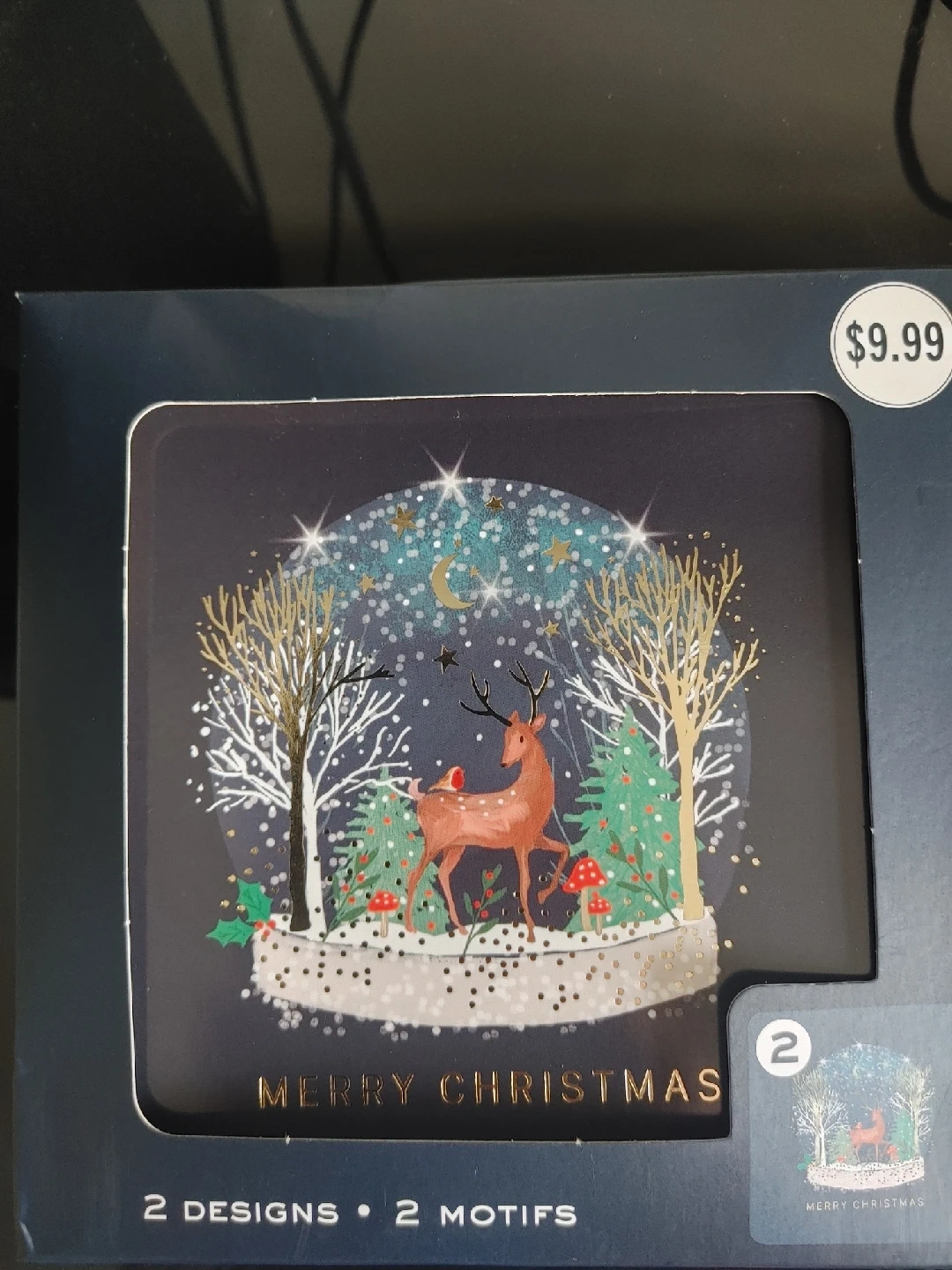 Christmas cards, I only used around 4 and don't really need the rest, so hopefully someone else can use them. The box includes envelopes as well.