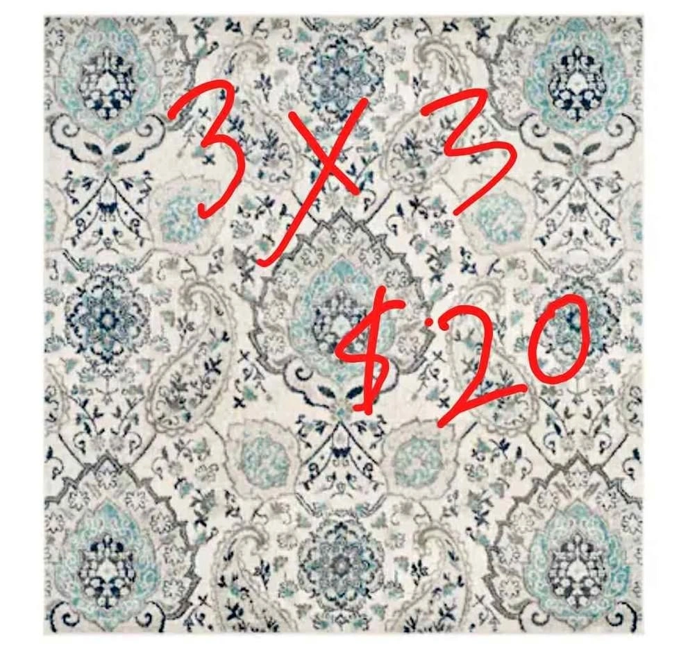 10Brand New 3x3 Sq Area Rug Suitable for entryway Blue Polypropylene ==$20 Southwestern Handmade ==$40 sold Pick up at #4-2418 Glenwood School Dr Burlington
