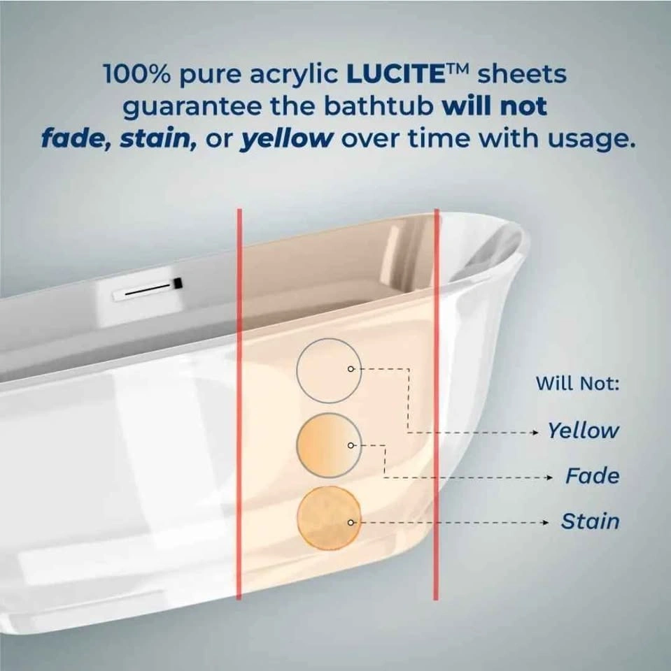 Incorporating pure LUCITE acrylic sheets in the manufacturing process of our bathtubs guarantees that the bathtub will retain its pristine color and will not yellow or stain with time