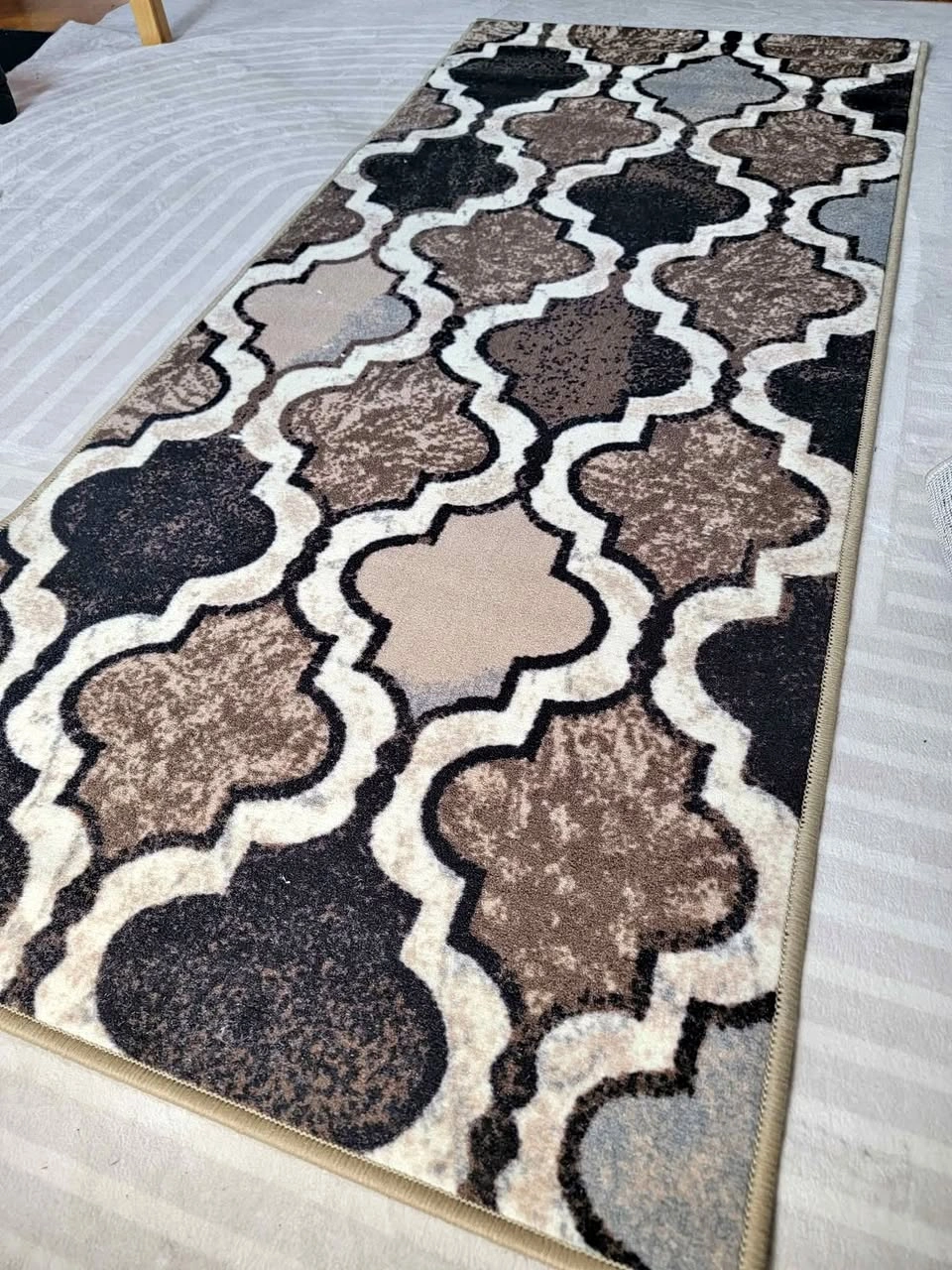 Brand New 3x6 Brown Beige Trellis Runner Rug Rubber backing Low pile Easy care Pick up at #4-2418 Glenwood School Dr Burlington