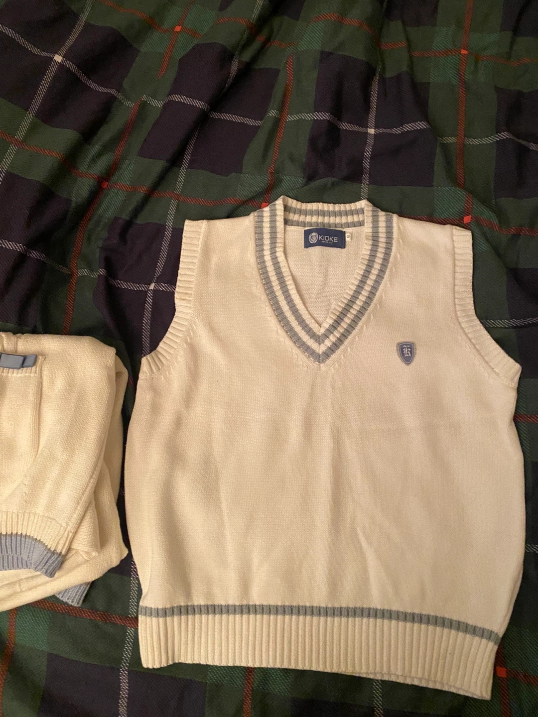 Selling a cute Kioke cardigan and vest set! The cardigan features a button-up design with adorable ribbon details on the pockets. Both pieces are size M and in great condition. Perfect for layering or adding a preppy touch to your wardrobe!