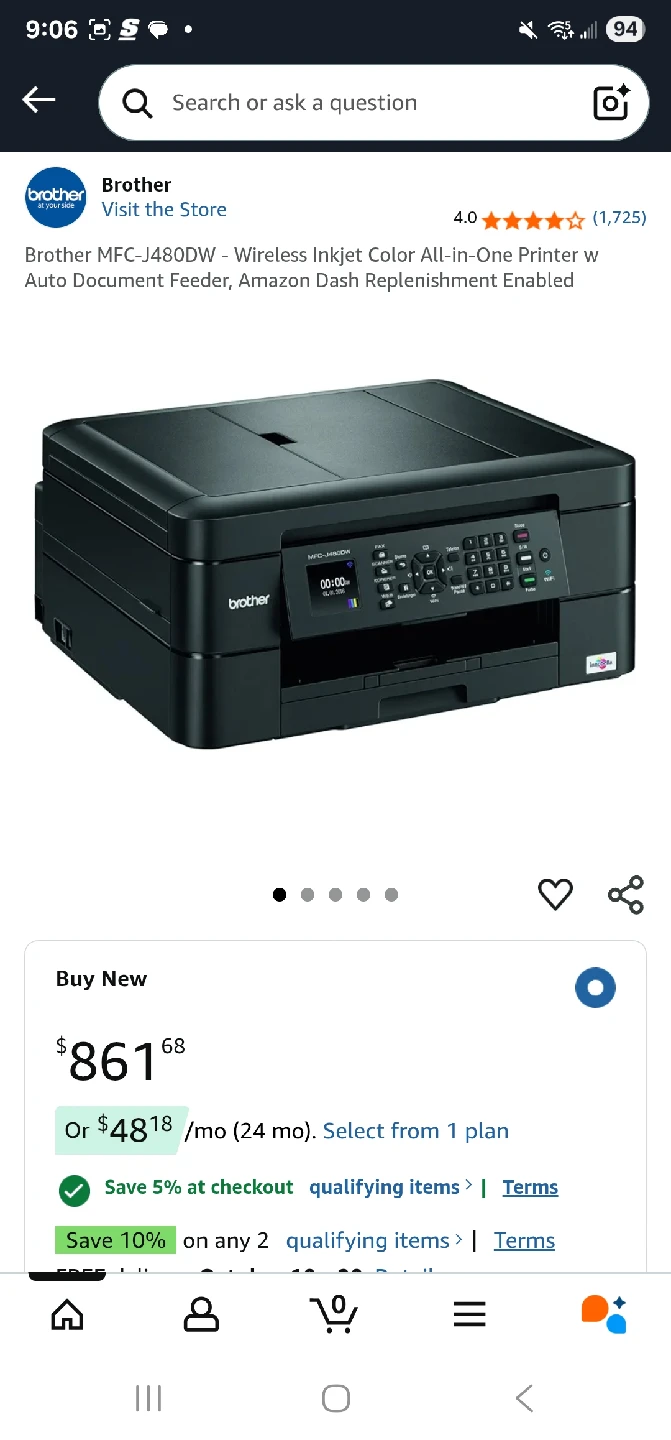 Brother MFC-J480DW Wireless Printer w/ Ink