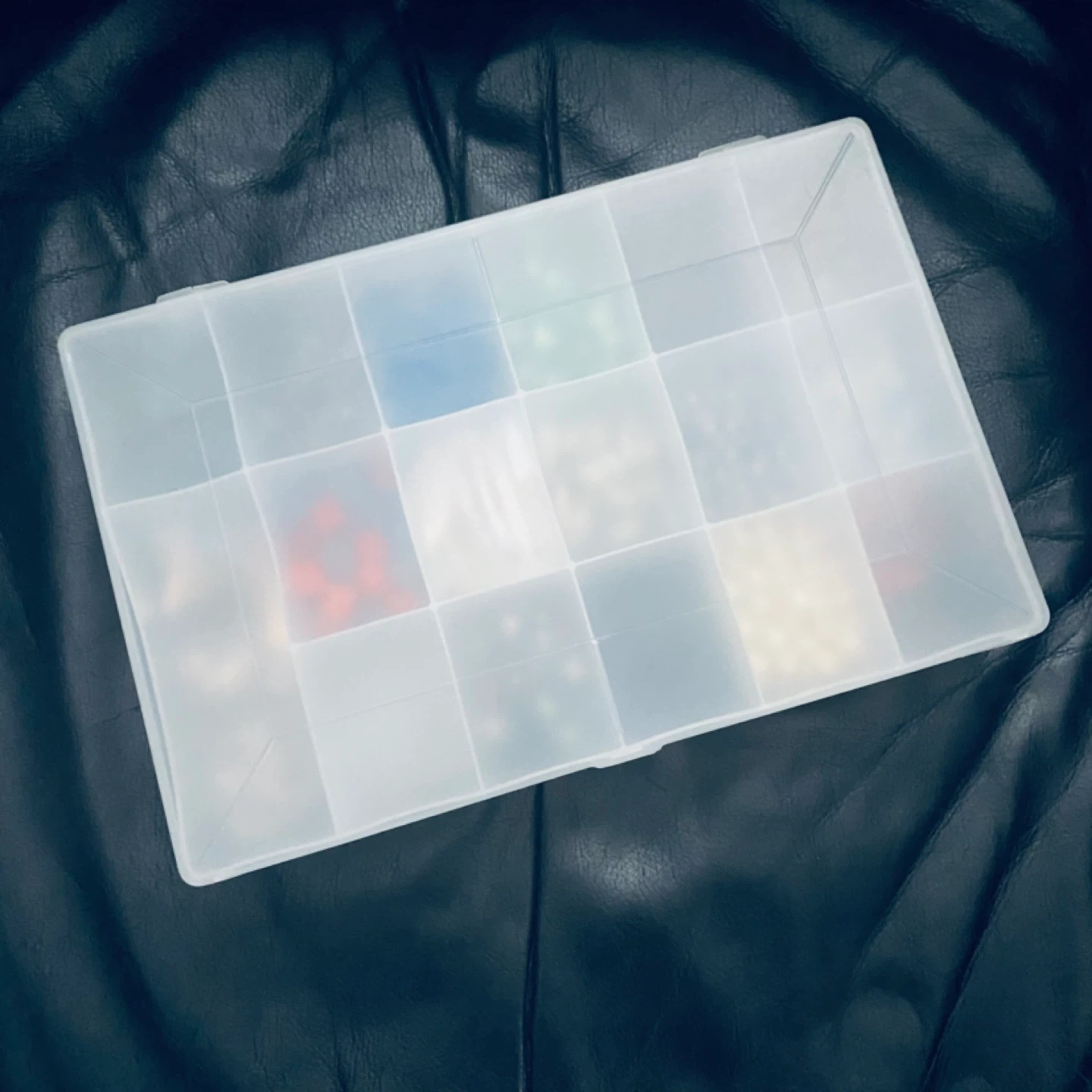 831Here's a storage box filled with a variety of beads, charms & jewellery parts! Perfect for your jewellery making or craft projects. The box keeps everything organized and easy to find - and is included. Assorted materials include glass, shell, wood, plastic and metal.