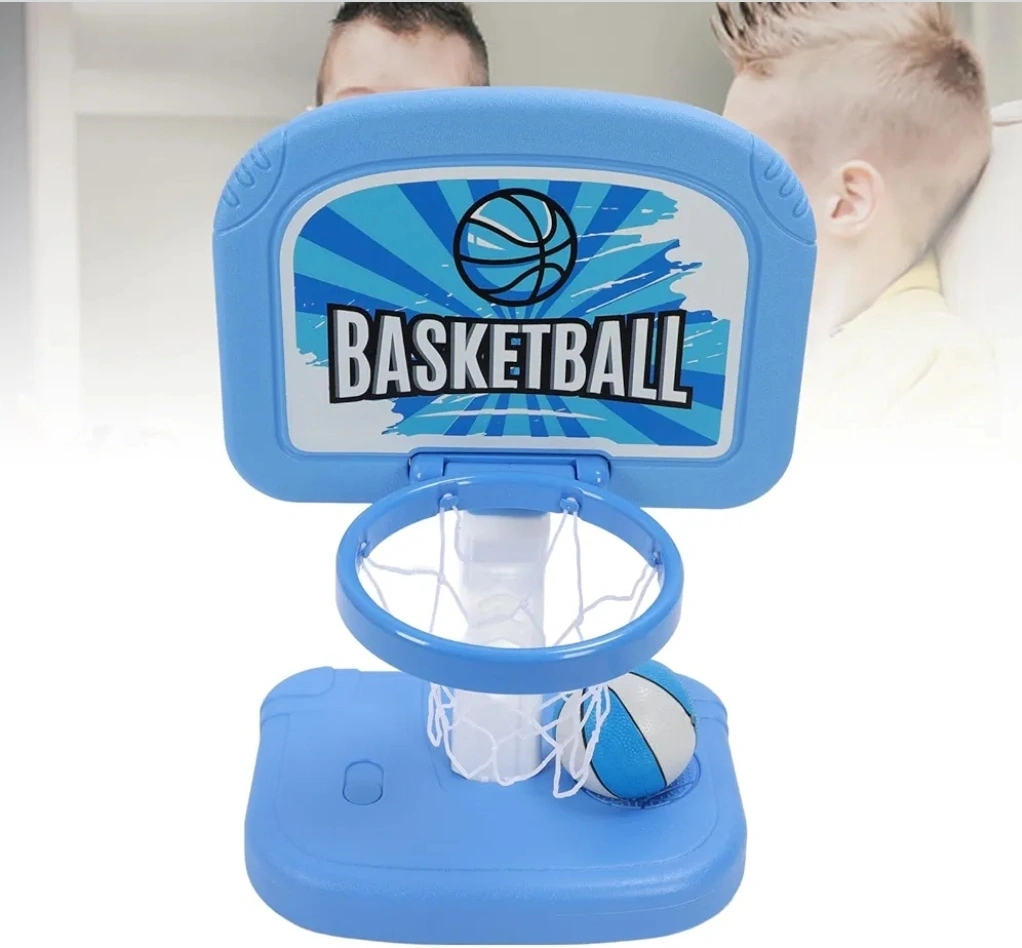 this is a fun basketball hoop set for kids! It comes in blue and includes the hoop, net, stand, two basketballs, and a pump to inflate the balls. Great for indoor or outdoor play