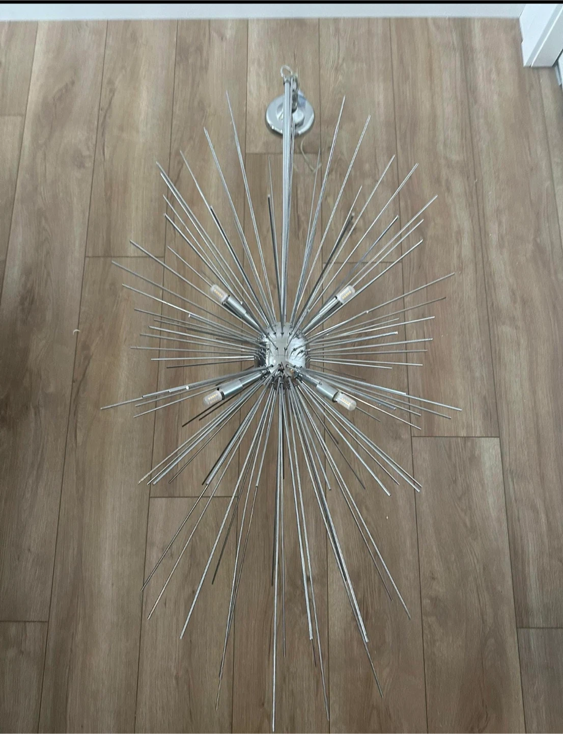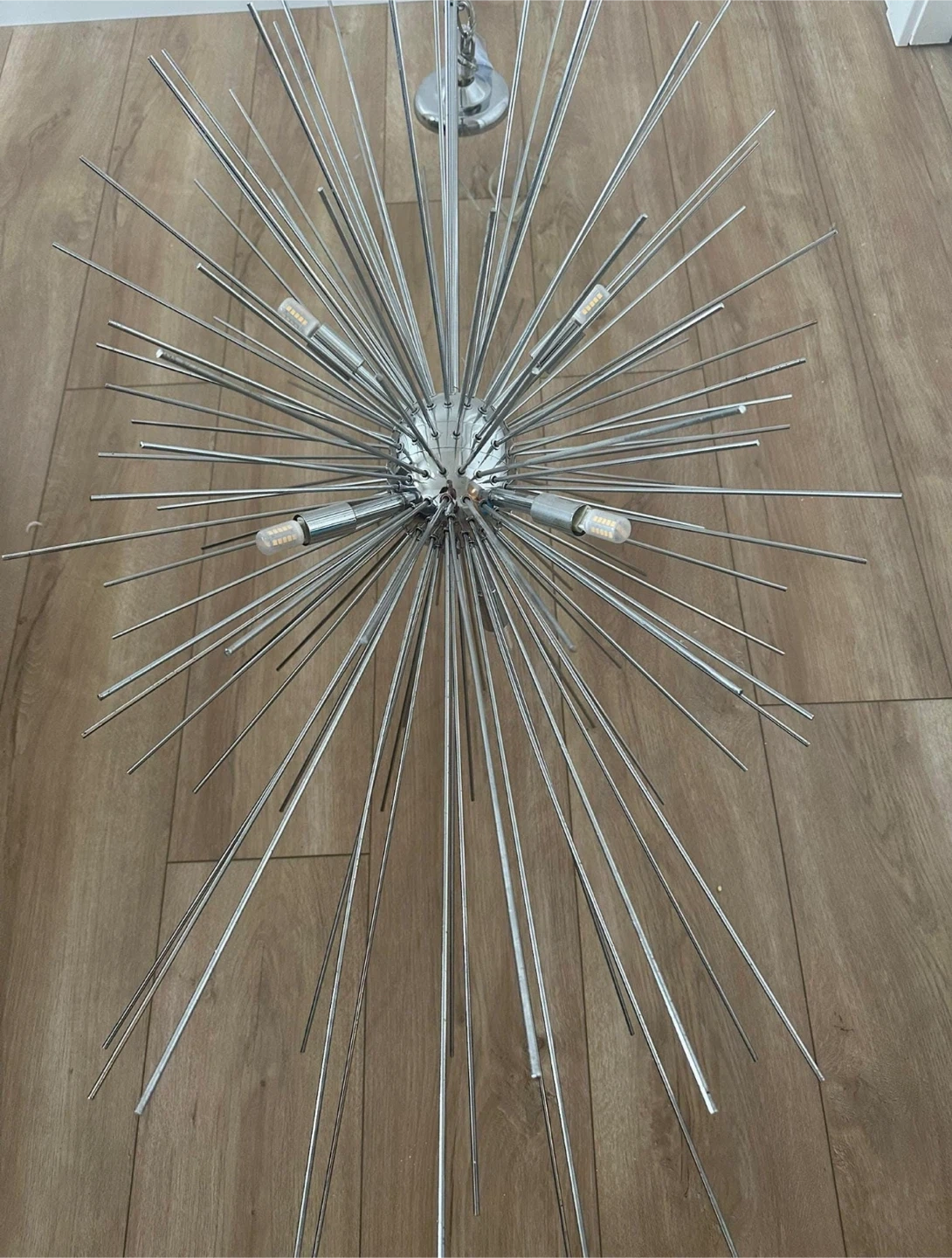 Add a touch of retro glam to your home with this starburst chandelier! This eye-catching light fixture is sure to be a conversation starter. It's in great condition and ready to brighten up your space