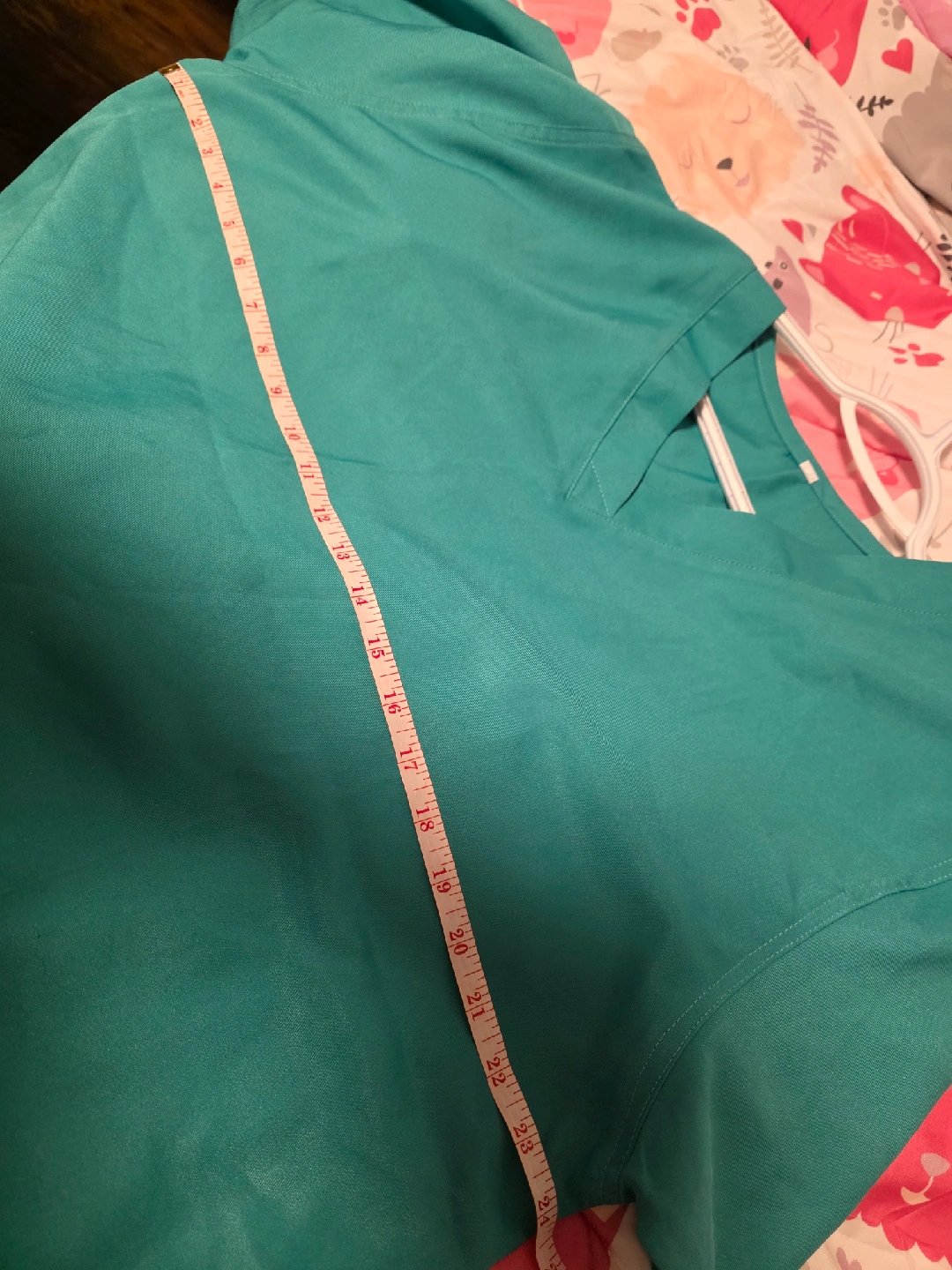 Selling a teal scrub set, includes both the top and pants. The pants measure approximately 33 inches in length and the top is about 23 inches across. Perfect for medical professionals or students! Used. Good Condition.