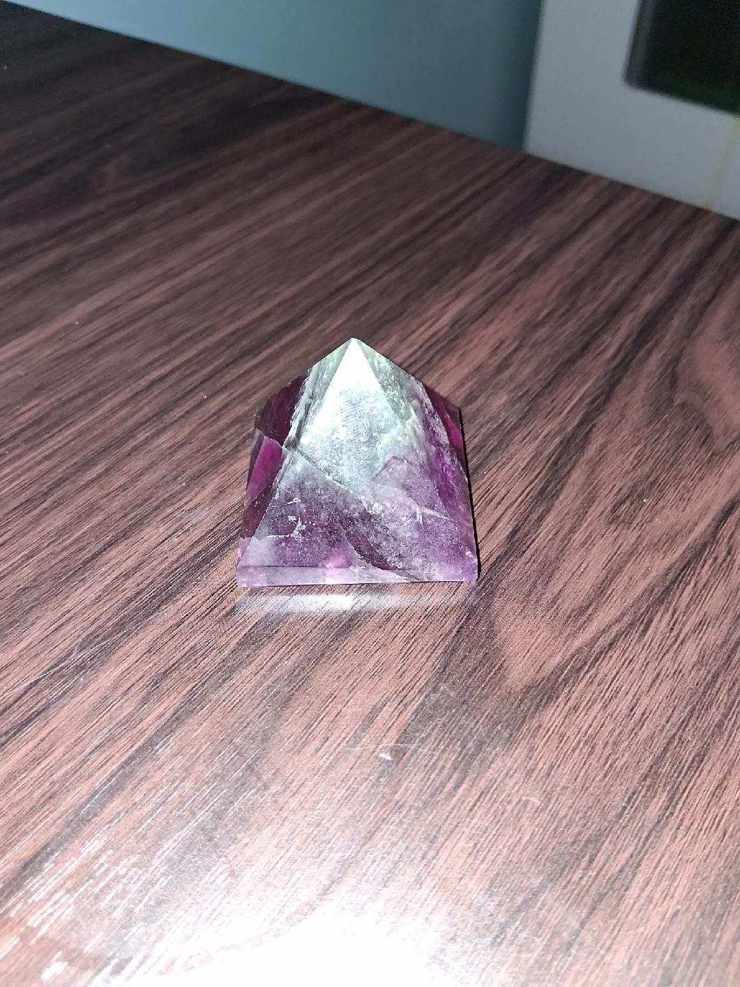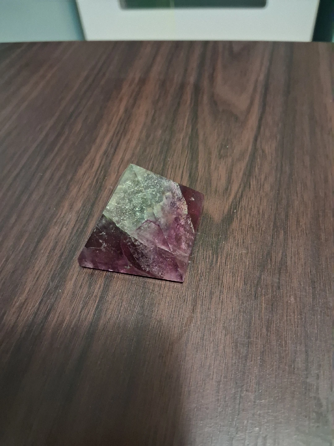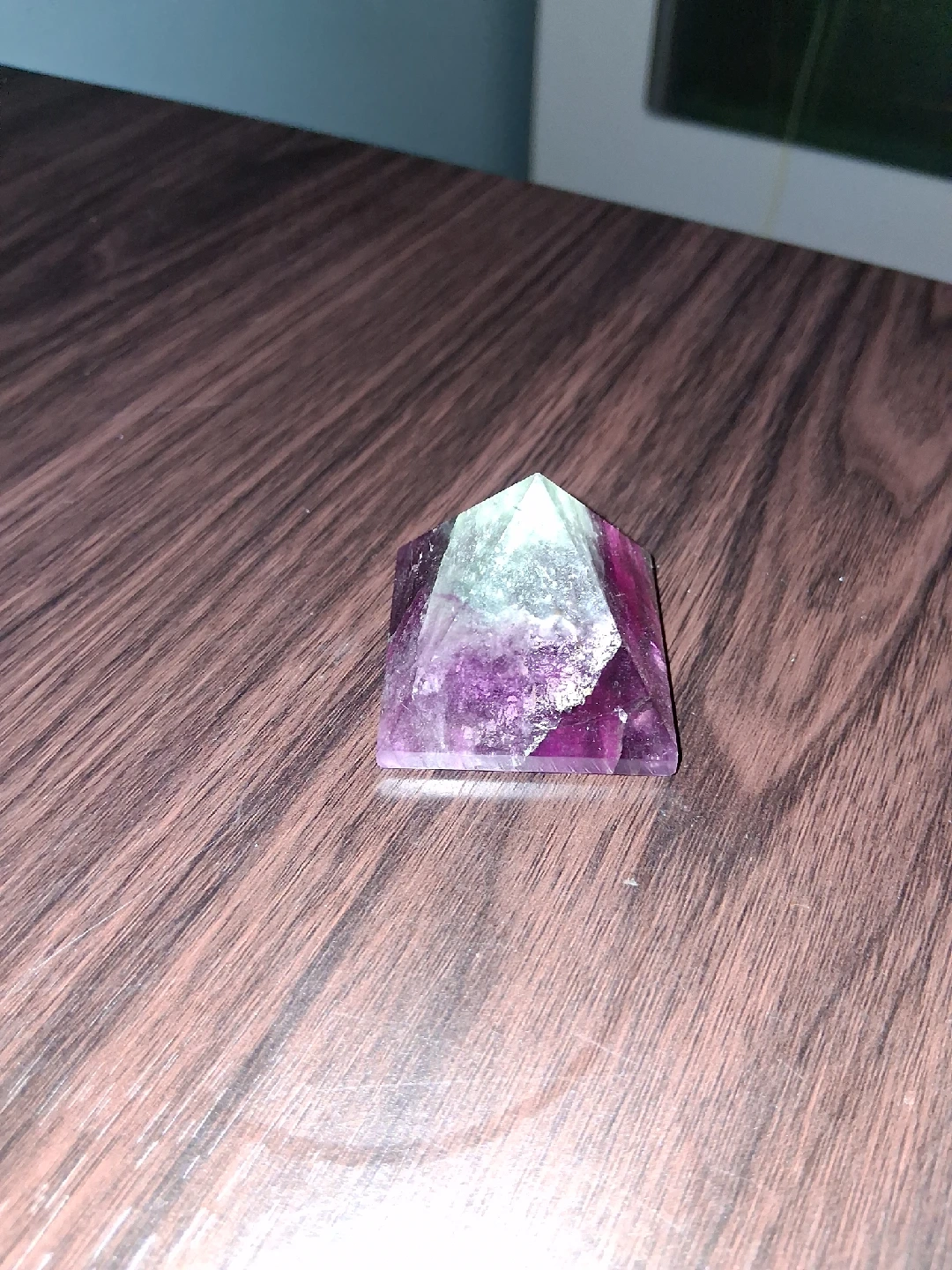 452Selling a beautiful fluorite pyramid crystal! It features a lovely blend of purple and green. Perfect for your collection or as a decorative piece!