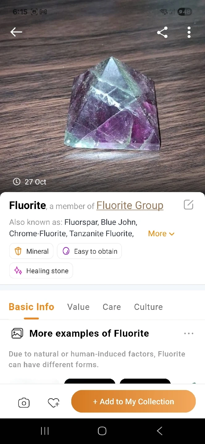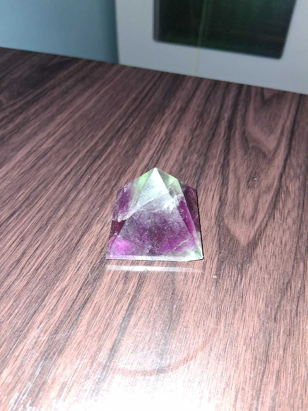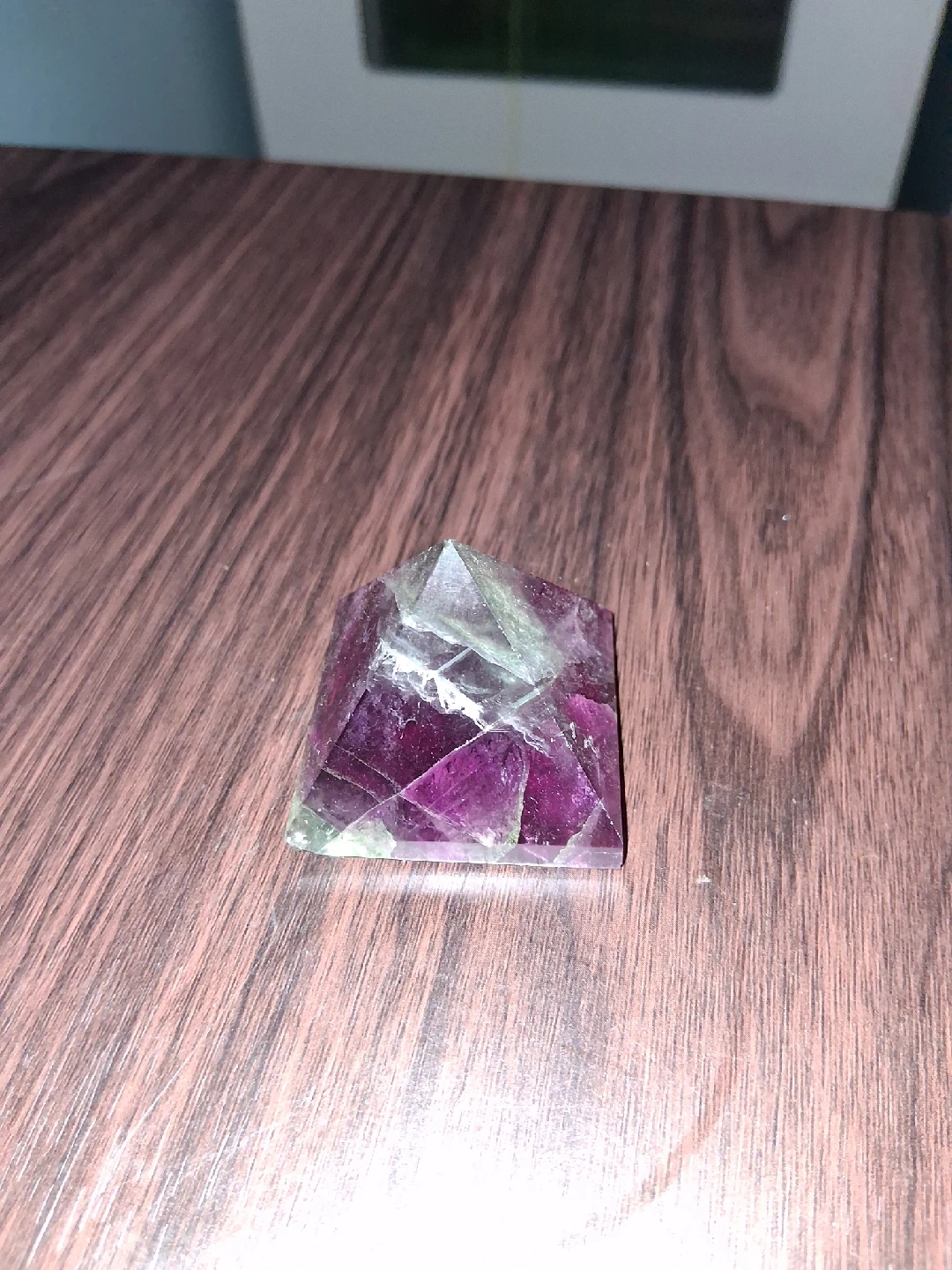 452Selling a beautiful fluorite pyramid crystal! It features a lovely blend of purple and green. Perfect for your collection or as a decorative piece!