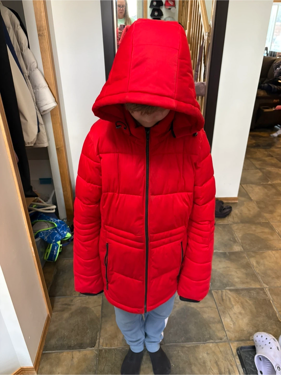 Selling a etage Denmark red puffer jacket. It's in great condition and ready to keep someone warm this winter! The jacket is a vibrant red colour and has a hood for extra protection from the elements.