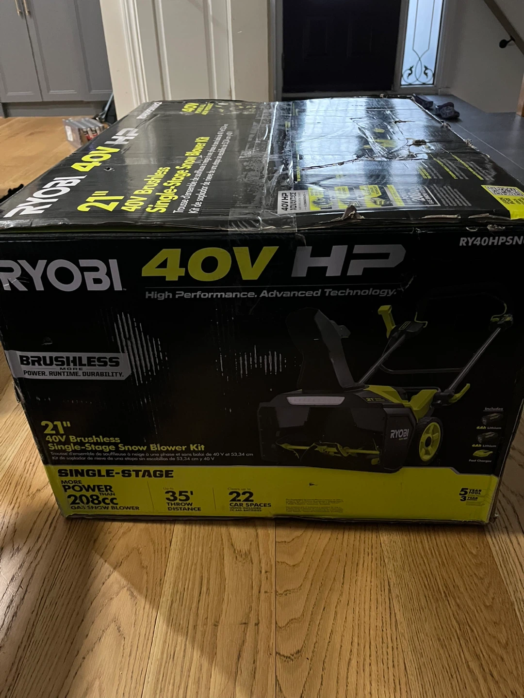 Selling a brand new Ryobi 40V HP 21" single-stage snow blower kit, still in its original packaging! This brushless snow blower offers power, runtime, and durability. It's a single-stage model with more power than a 208cc gas snow blower, and it can throw snow up to 35 feet. It's designed to clear up to 22 car spaces. The kit includes 2 6Ah battery and a fast charger, so you're ready to tackle the snow right away