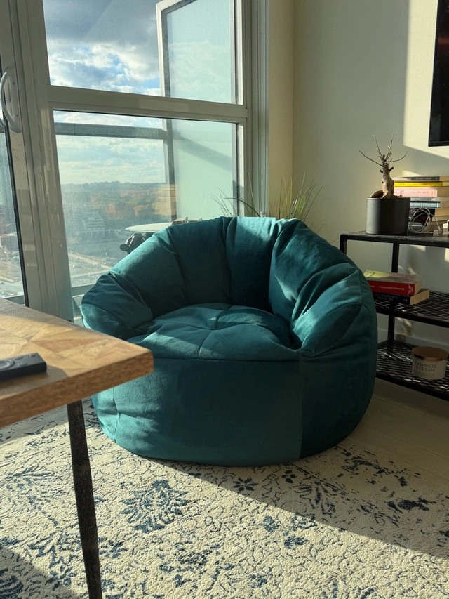 Stylish and unique Zen Seats in a strong, durable fabric — perfect for adults. Available in two stunning colors: terracotta and tiffany blue. Each bean bag offers ultimate comfort with a modern, elegant design that fits any living room, lounge, or studio. $100 each. Buy both and get 2 free pillows! ✨ Handmade with high-quality materials. Brand new, lightly used for a photoshoot. Ready to add a cozy and aesthetic touch to your space! Text or WhatsApp: +1 (437) 545-1144. Location: Don Mills & Eglinton, Toronto. For Sale By: Owner