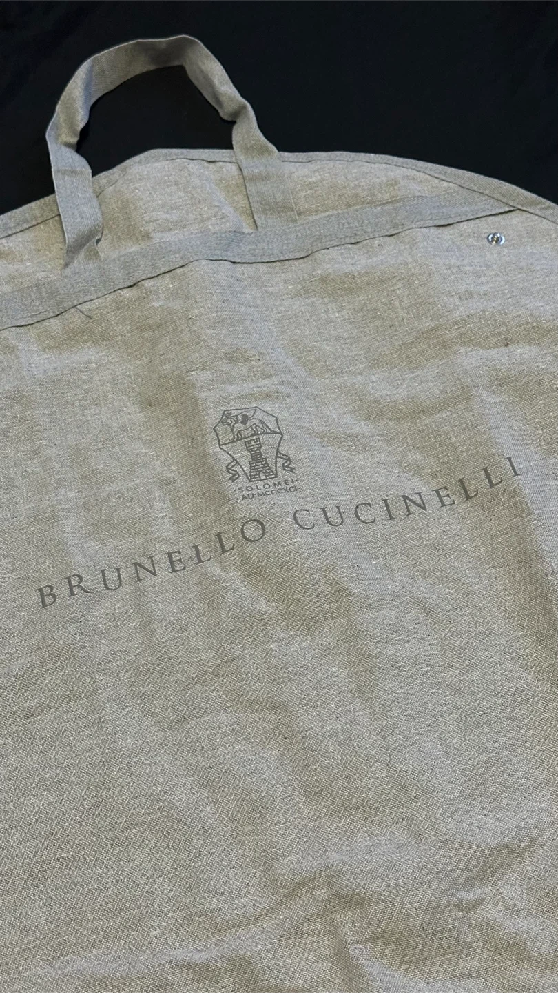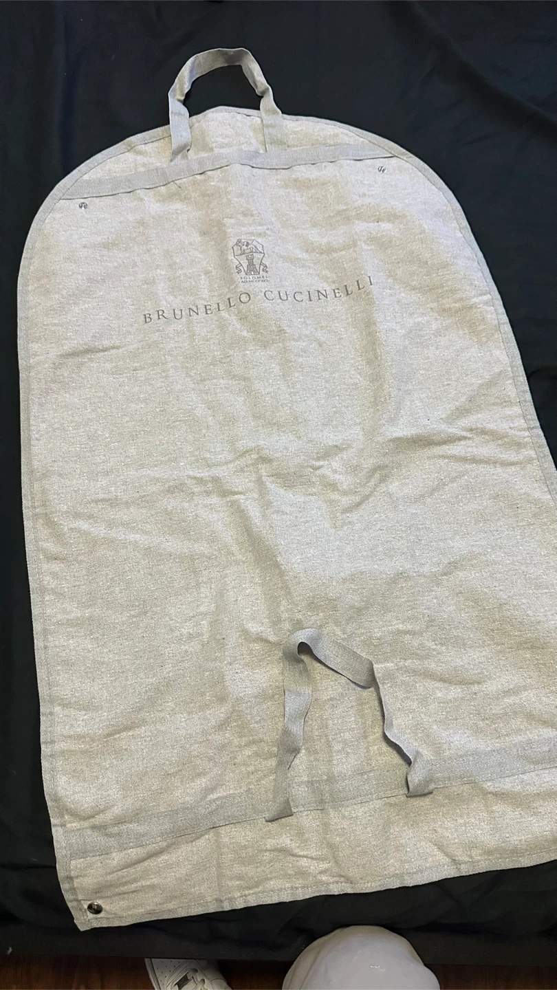 Selling a Brunello Cucinelli garment bag in great condition! It's a light grey colour and features the brand's logo. Perfect for storing and transporting your favourite clothes