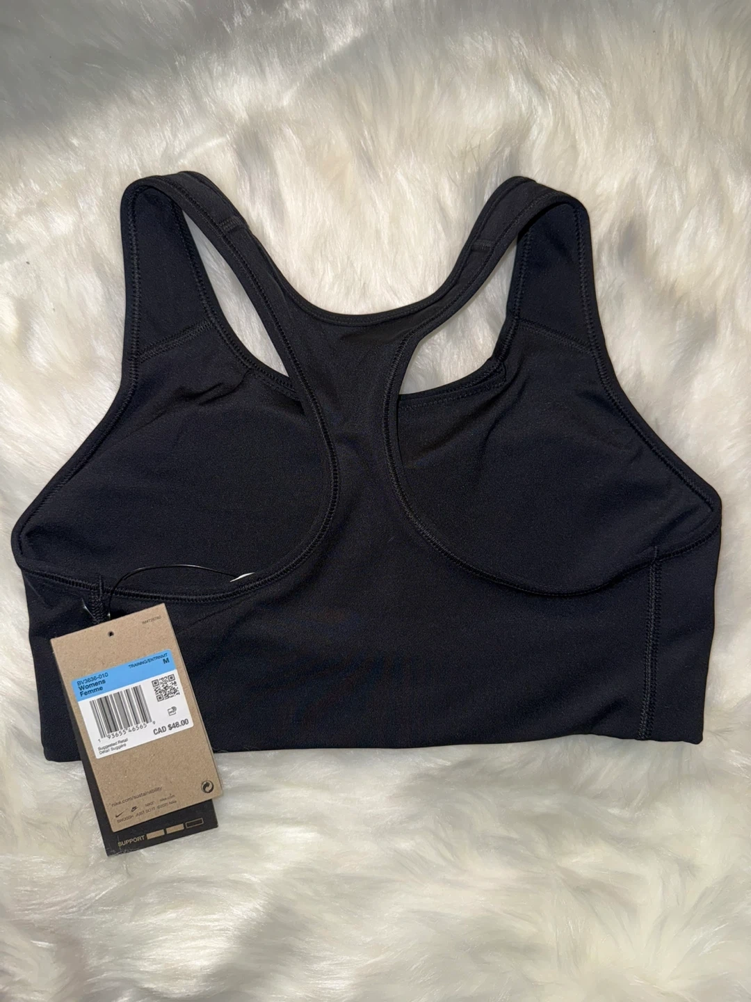 This is a Nike women's training sports bra in black, size medium. It offers medium support. The original price was CAD $48.00. It features Dri-FIT technology to help keep you dry and comfortable!