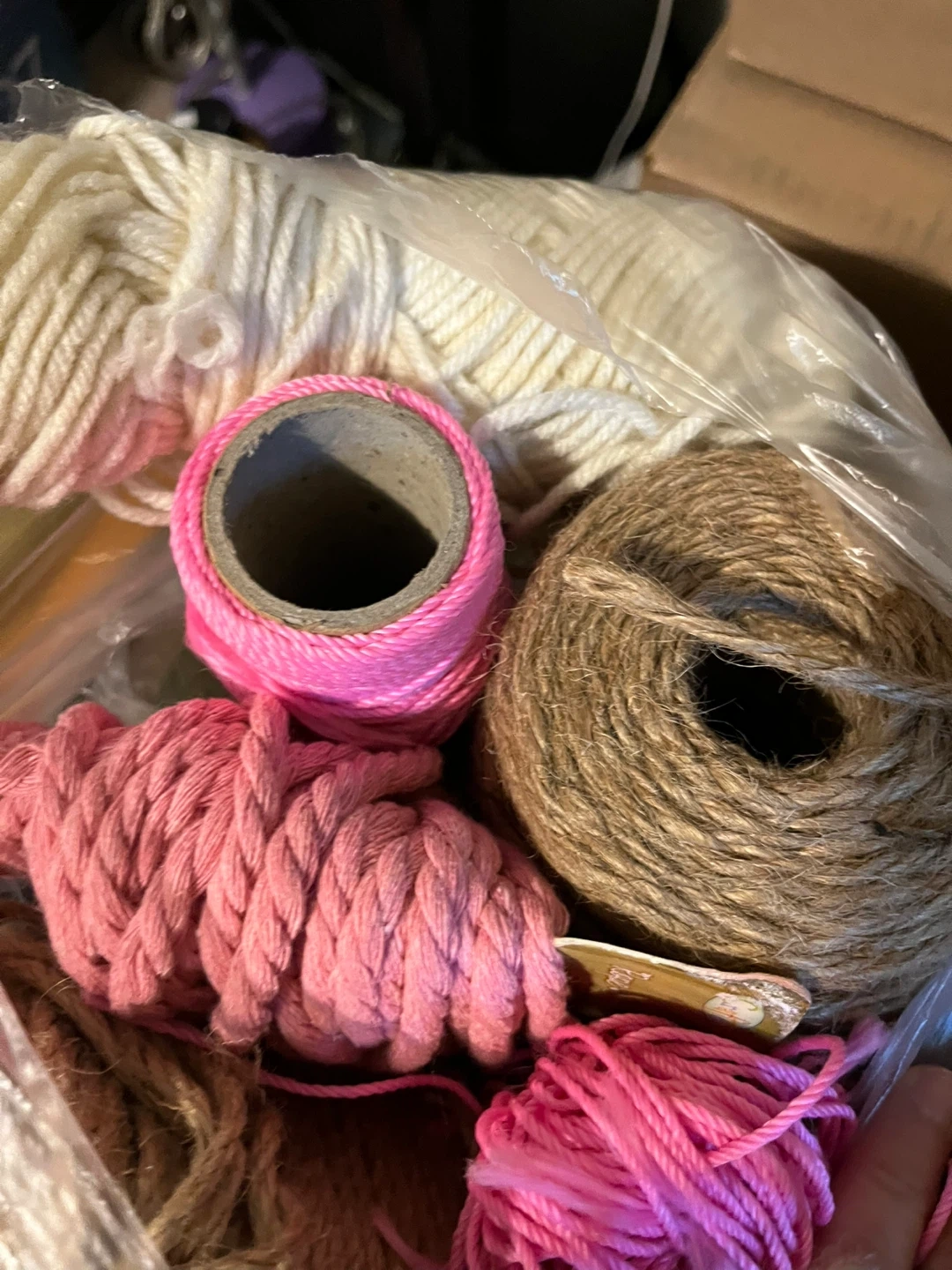 30Selling a collection of yarn and ropes in various colours! This lot includes pink, brown, and cream yarns. Perfect for your next knitting or crochet project!