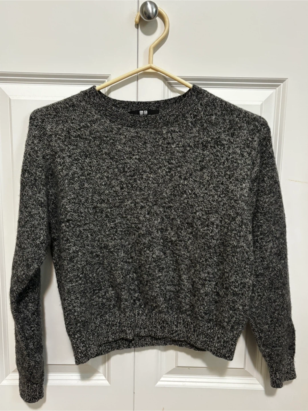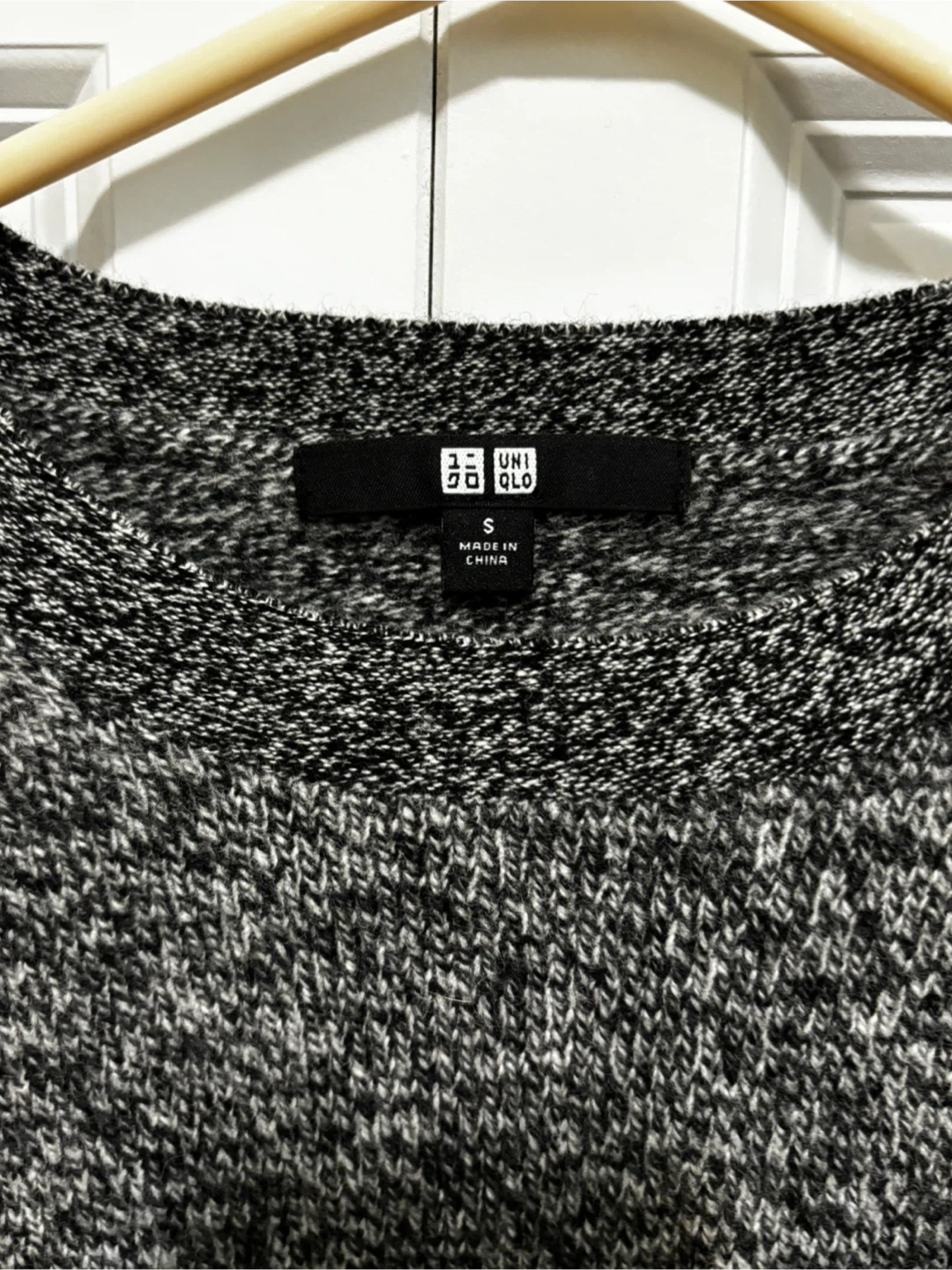 41Selling a cozy Uniqlo sweater in size small! It's a grey wool blend, perfect for staying warm. The material is 100% wool and it's in great condition. A great addition to any wardrobe!